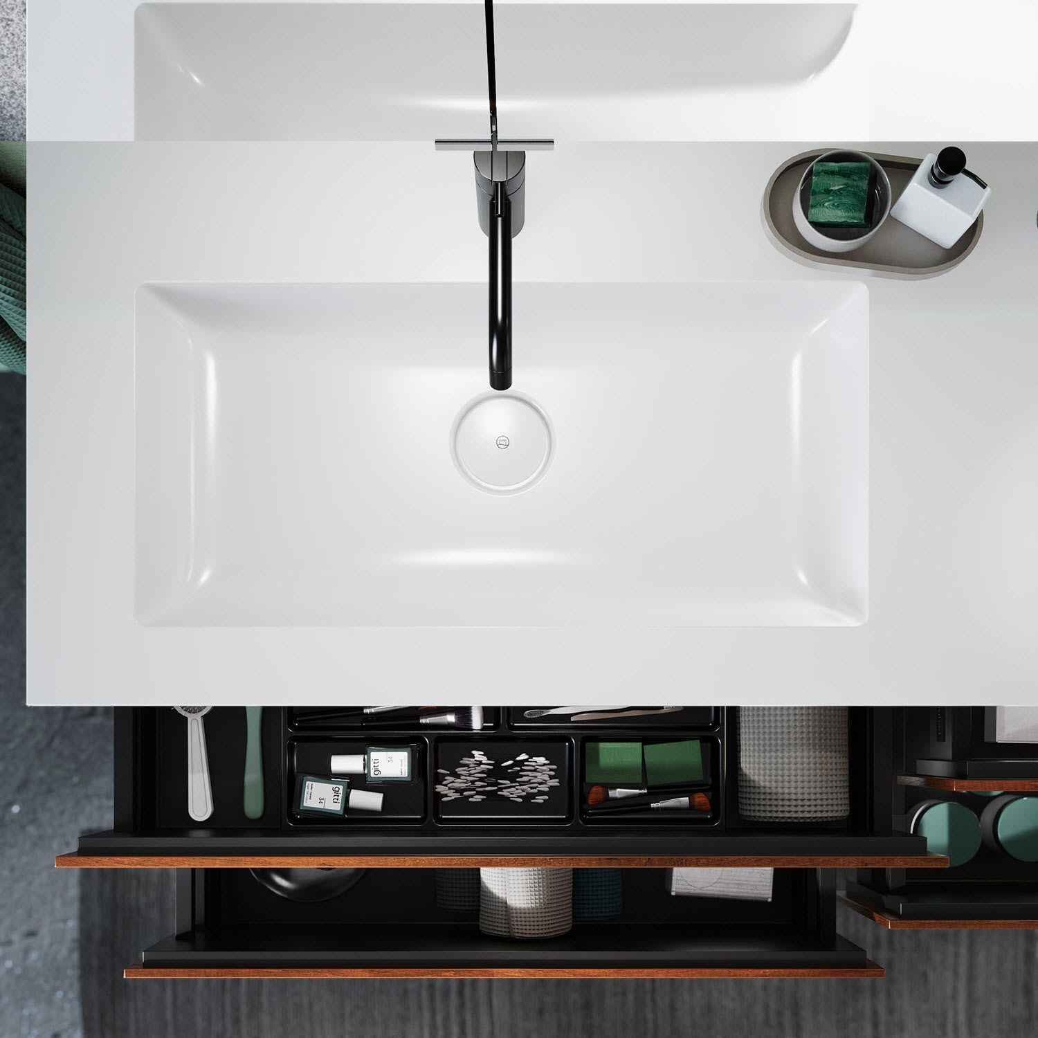burgbad Lin20 Waschtischunterschrank mit Mineralguss-Doppelwaschtisch 162 cm, 4 Auszüge, links und rechts