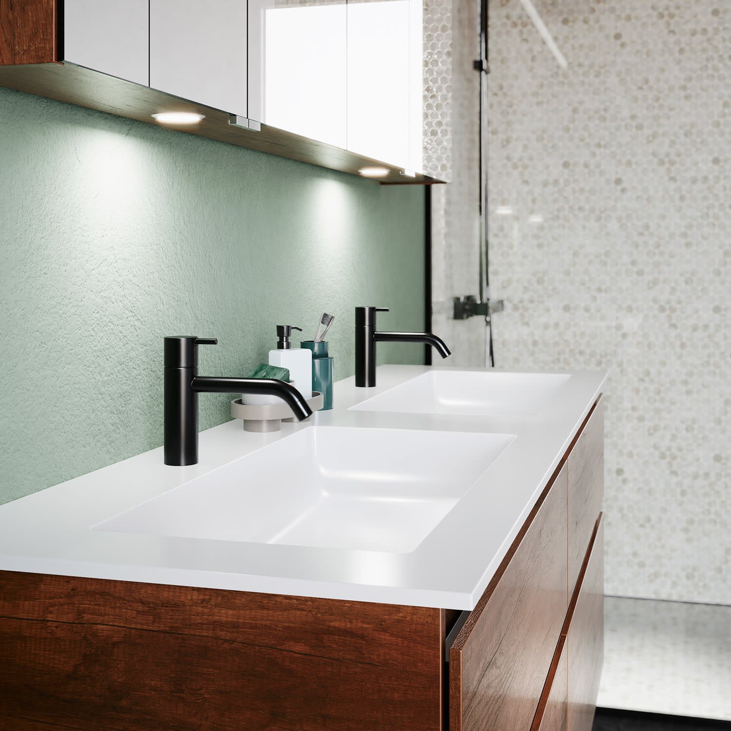 Puris c!puro Waschtischset 152 cm mit Doppelwaschtisch und Unterschränken mit 6 Auszügen, Griff 351