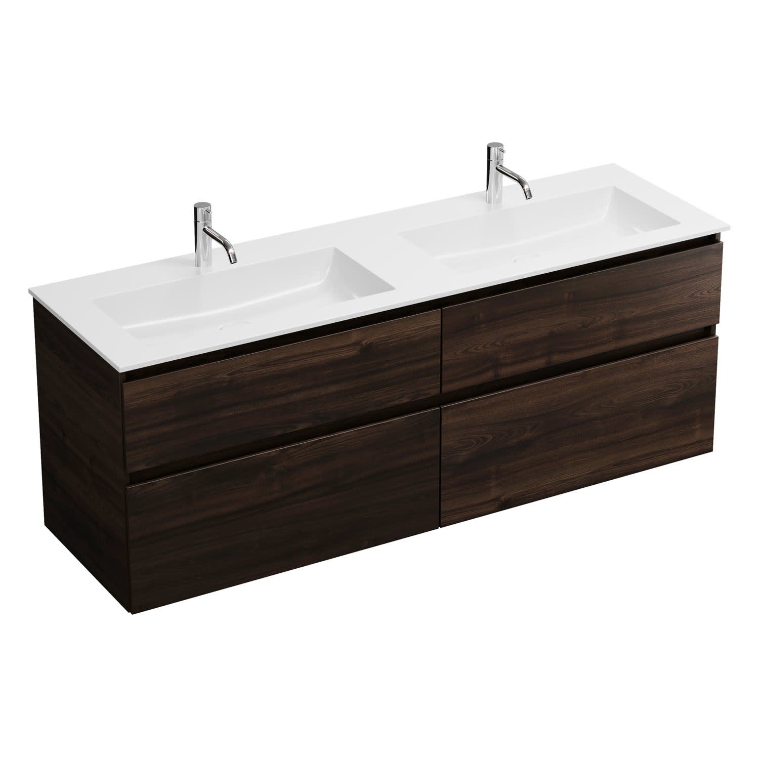 Kronenbach Cube Waschtischkonsole 161 cm für 2 Waschtische mit 4 Auszügen und TIP-ON