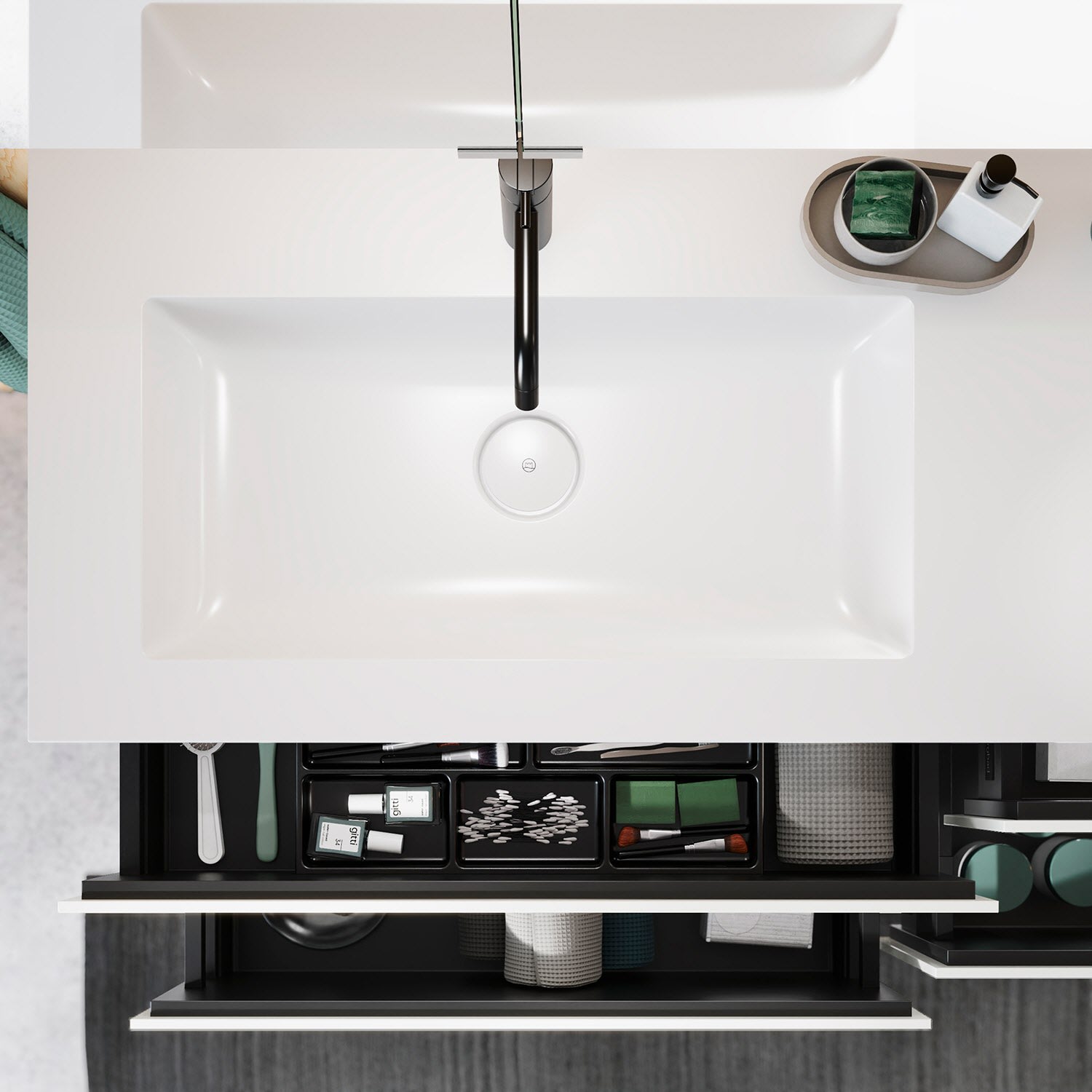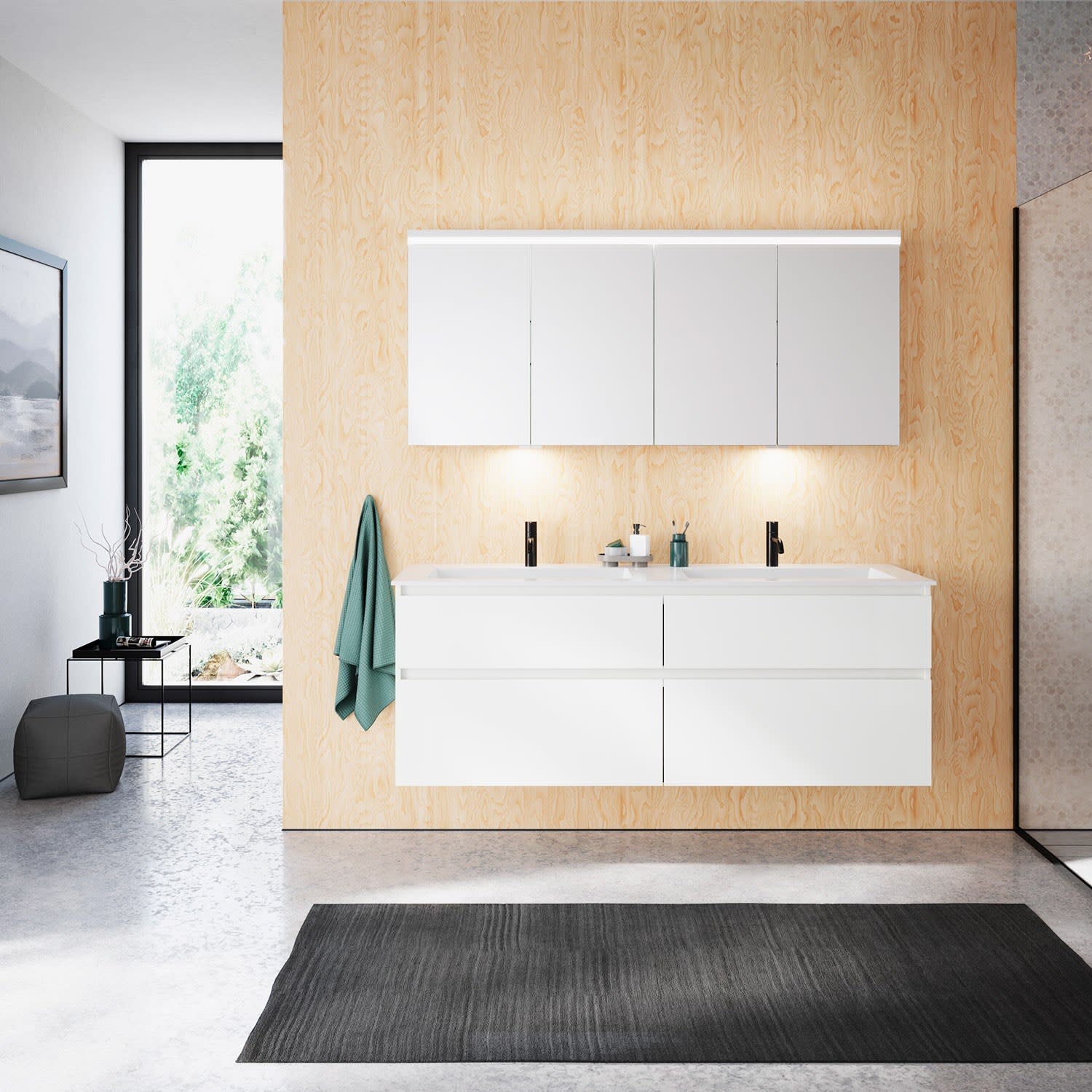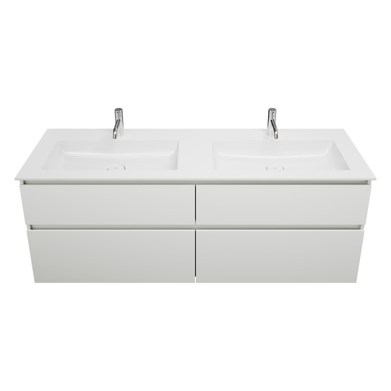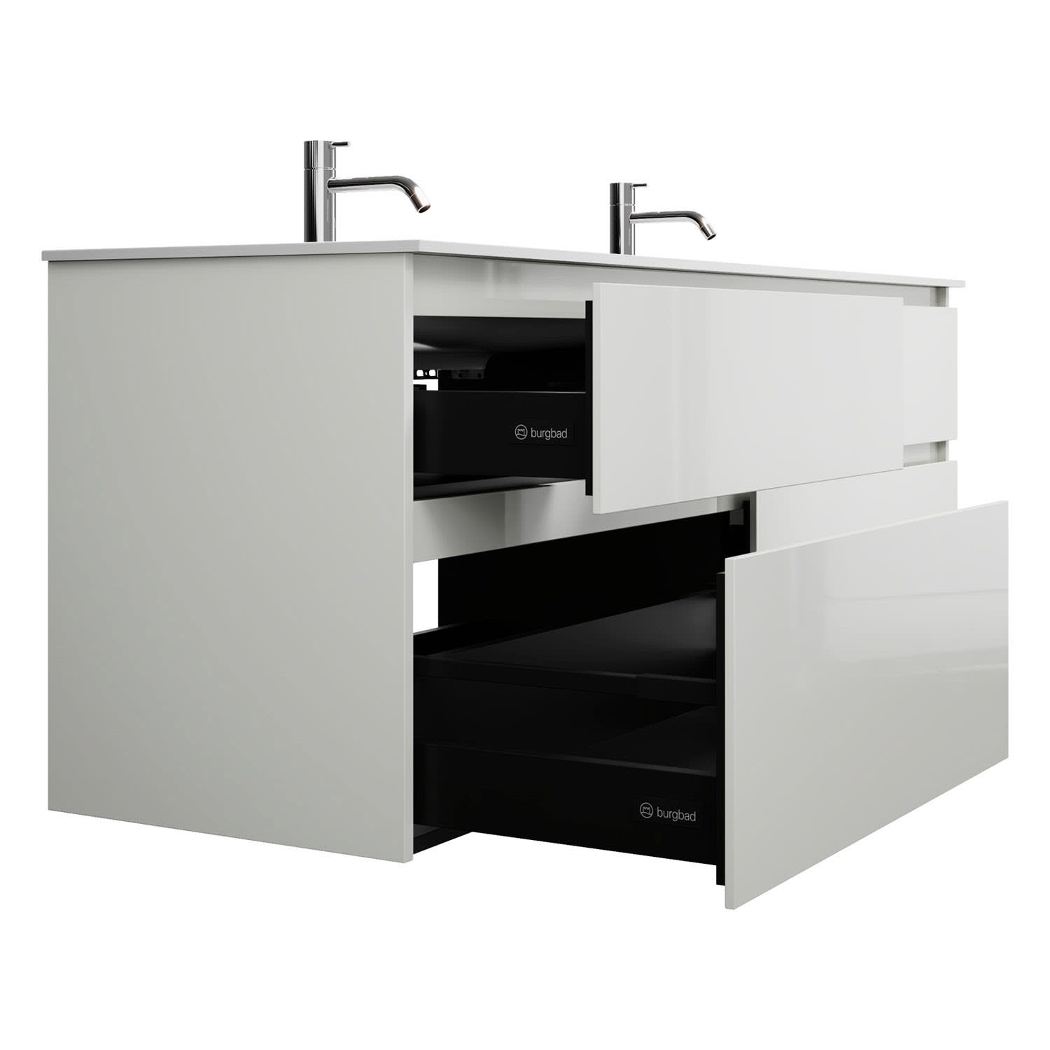 burgbad Lin20 Waschtischunterschrank mit Mineralguss-Doppelwaschtisch 162 cm, 4 Auszüge, links und rechts