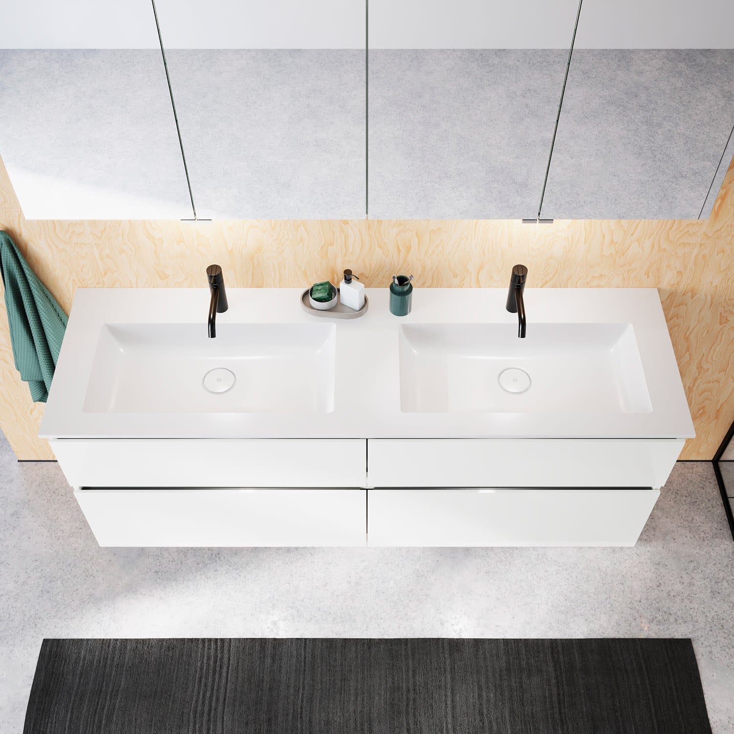 burgbad Lin20 Waschtischunterschrank mit Mineralguss-Doppelwaschtisch 162 cm, 4 Auszüge, links und rechts