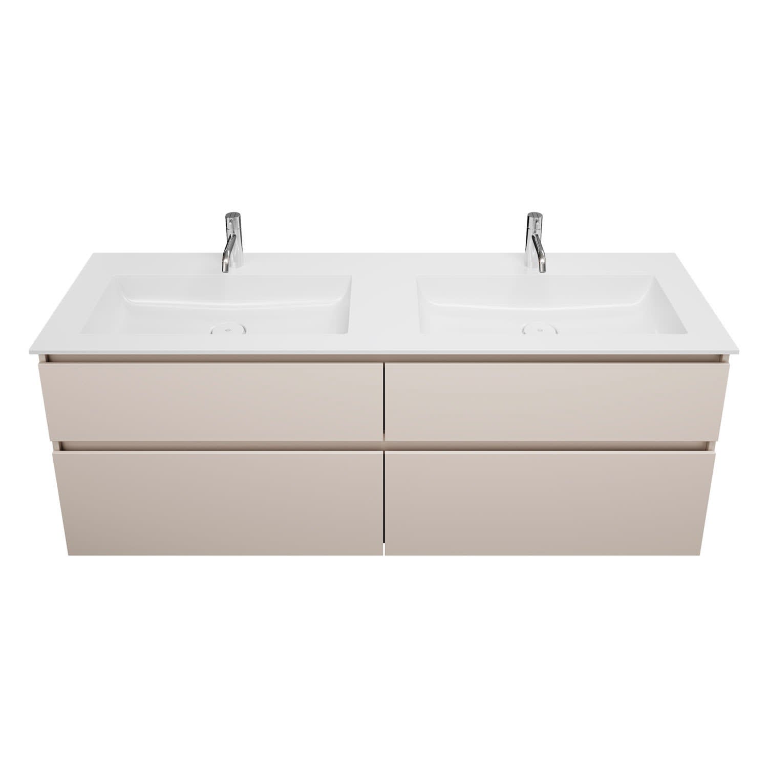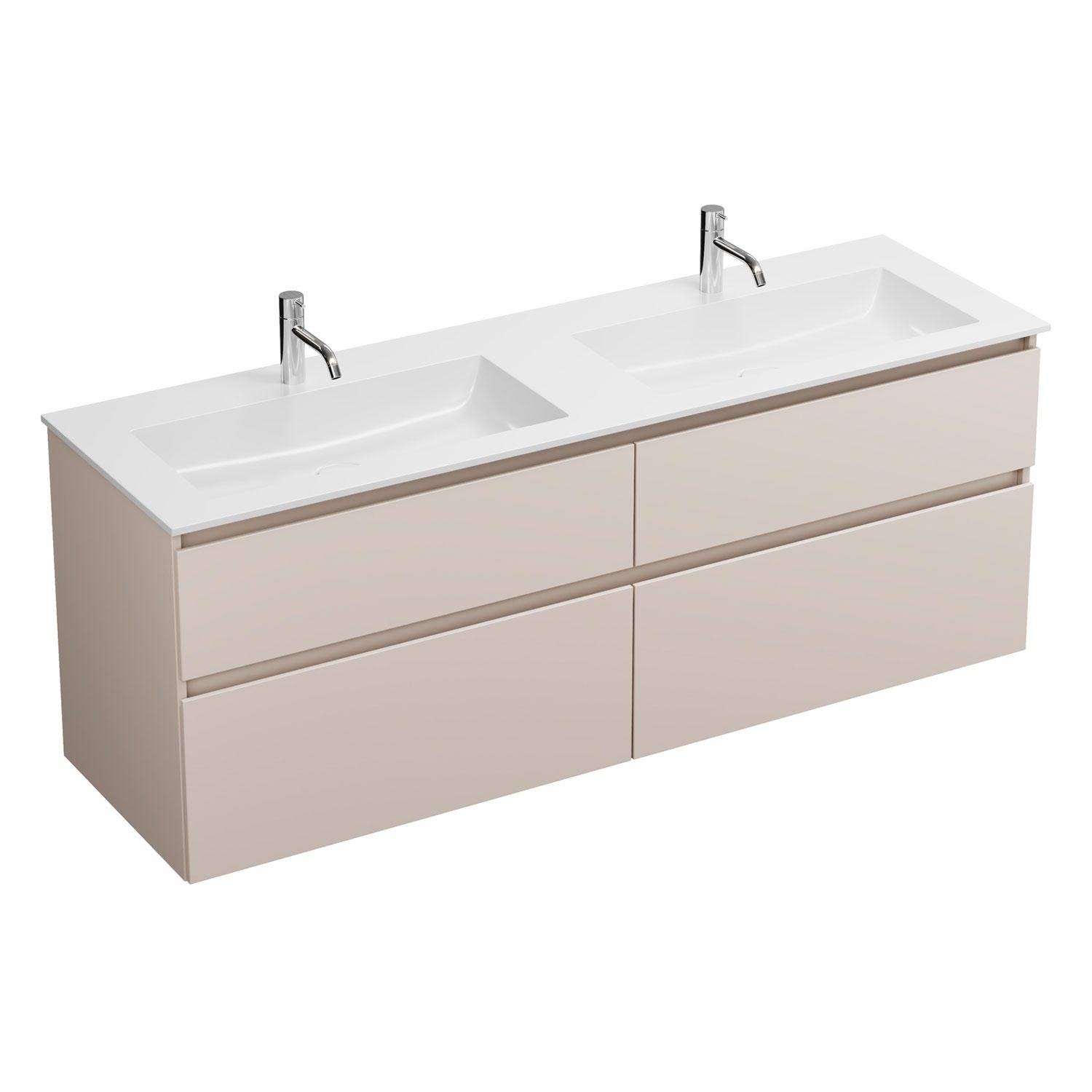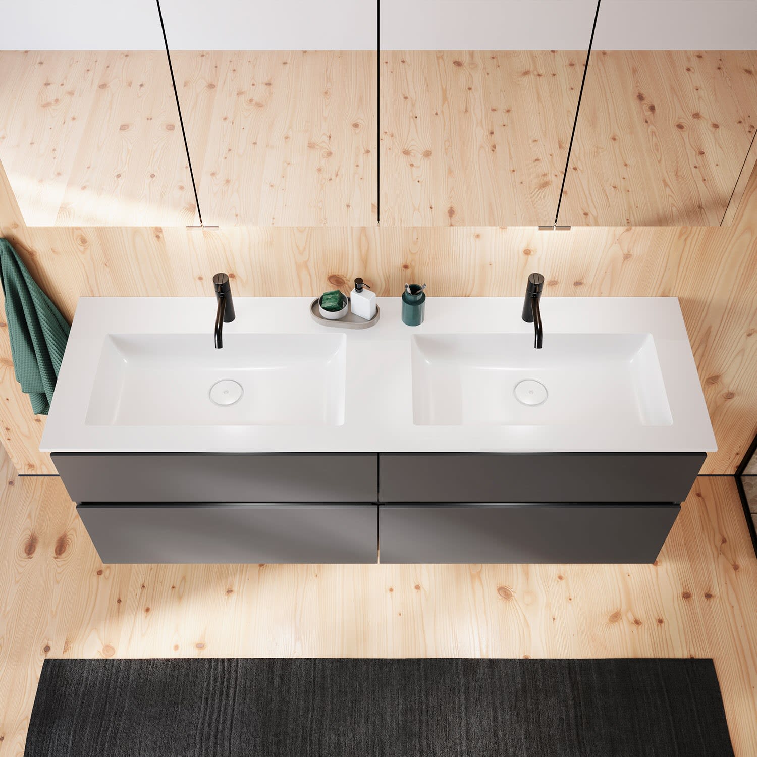 burgbad Lin20 Waschtischunterschrank mit Mineralguss-Doppelwaschtisch 162 cm, 4 Auszüge, links und rechts