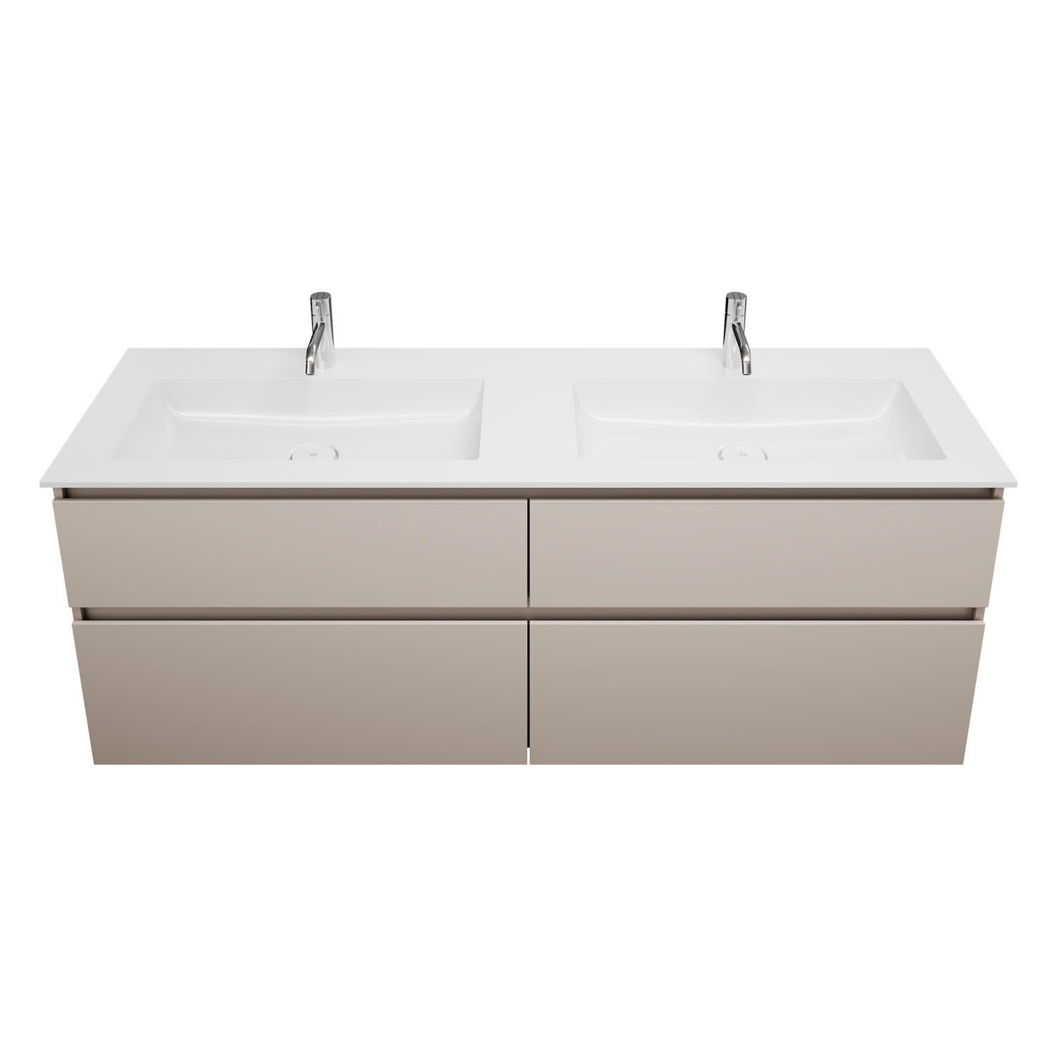 burgbad Lin20 Waschtischunterschrank mit Mineralguss-Doppelwaschtisch 162 cm, 4 Auszüge, links und rechts