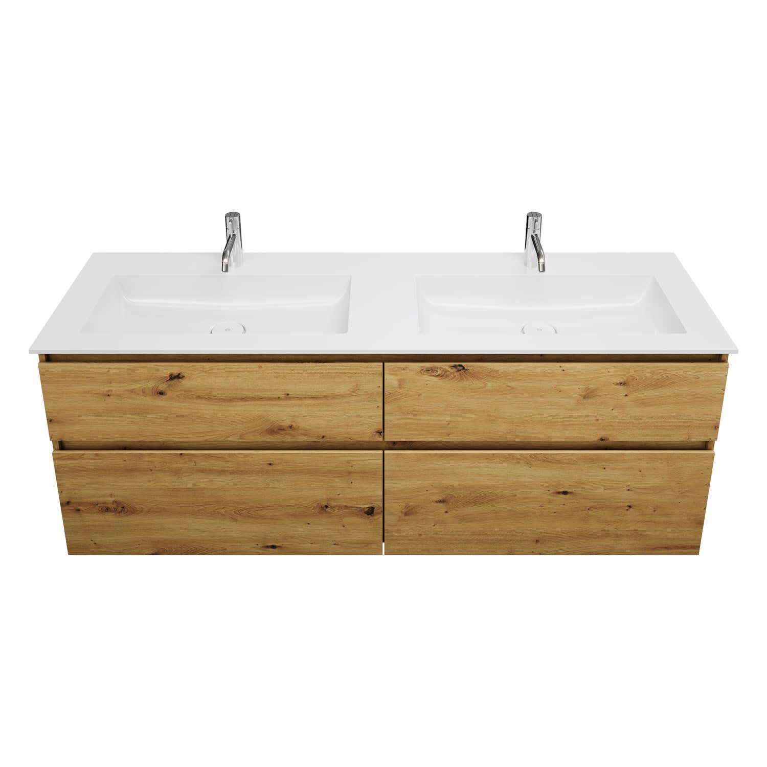 burgbad Lin20 Waschtischunterschrank mit Mineralguss-Doppelwaschtisch 162 cm, 4 Auszüge, links und rechts