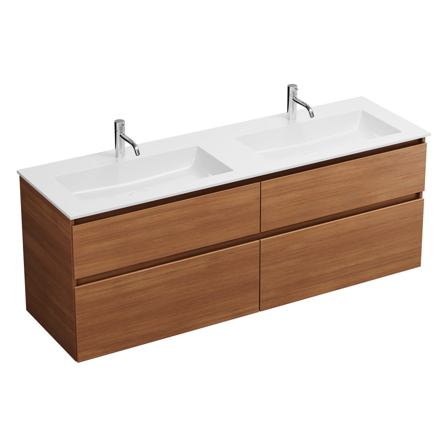 burgbad Lin20 Waschtischunterschrank mit Mineralguss-Doppelwaschtisch 162 cm, 4 Auszüge, links und rechts