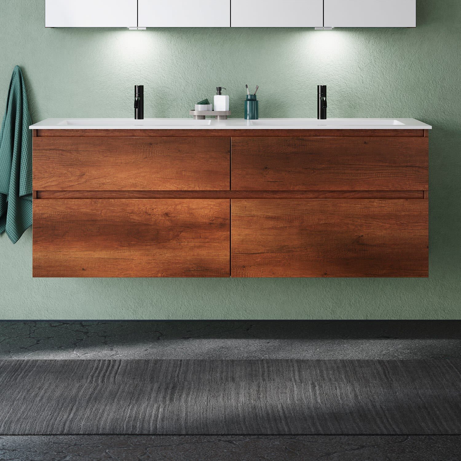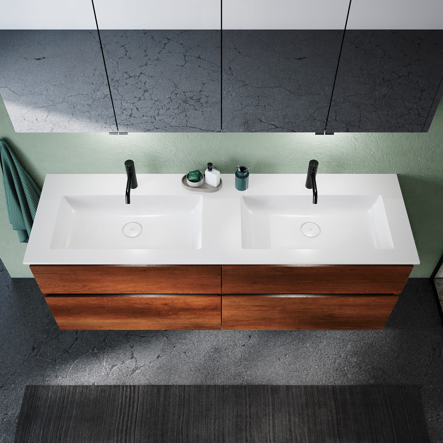 burgbad Lin20 Waschtischunterschrank mit Mineralguss-Doppelwaschtisch 162 cm, 4 Auszüge, links und rechts