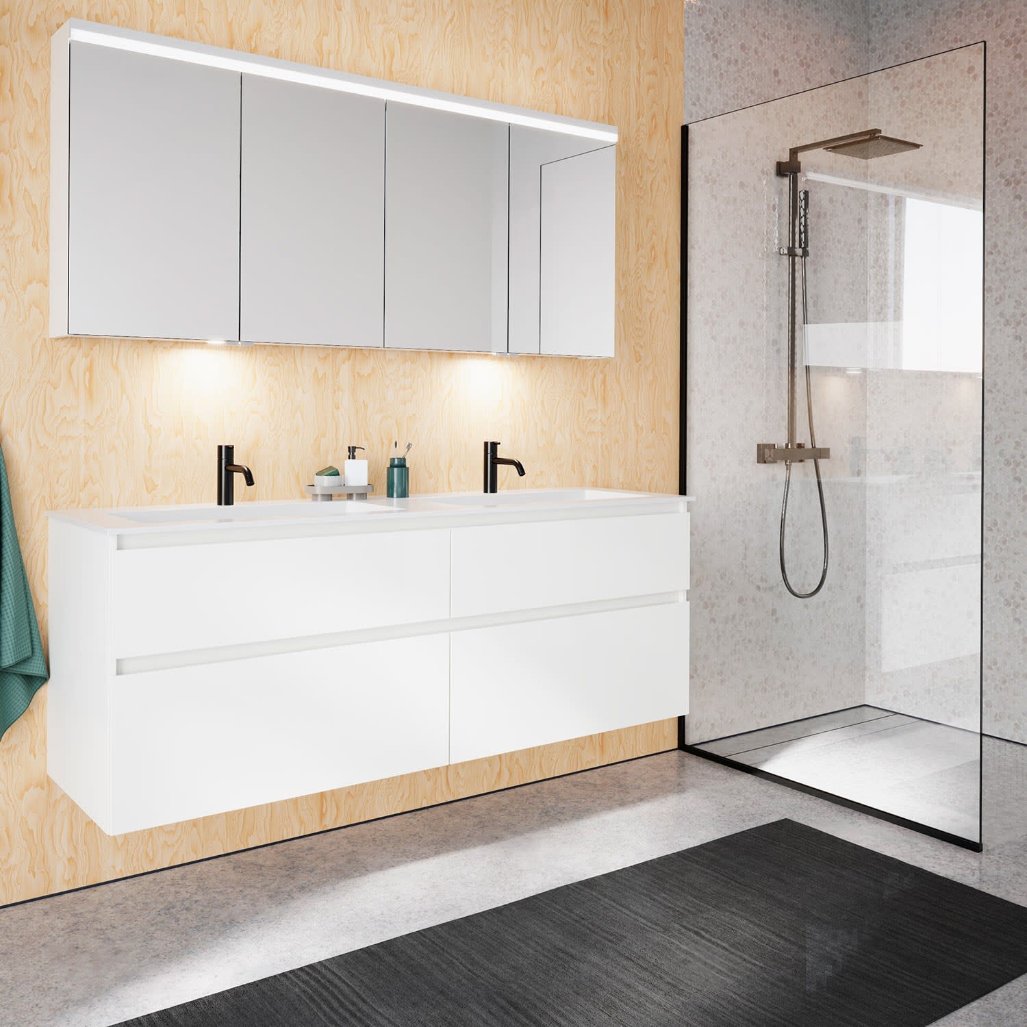 burgbad Lin20 Waschtischunterschrank mit Mineralguss-Doppelwaschtisch 162 cm, 4 Auszüge, links und rechts