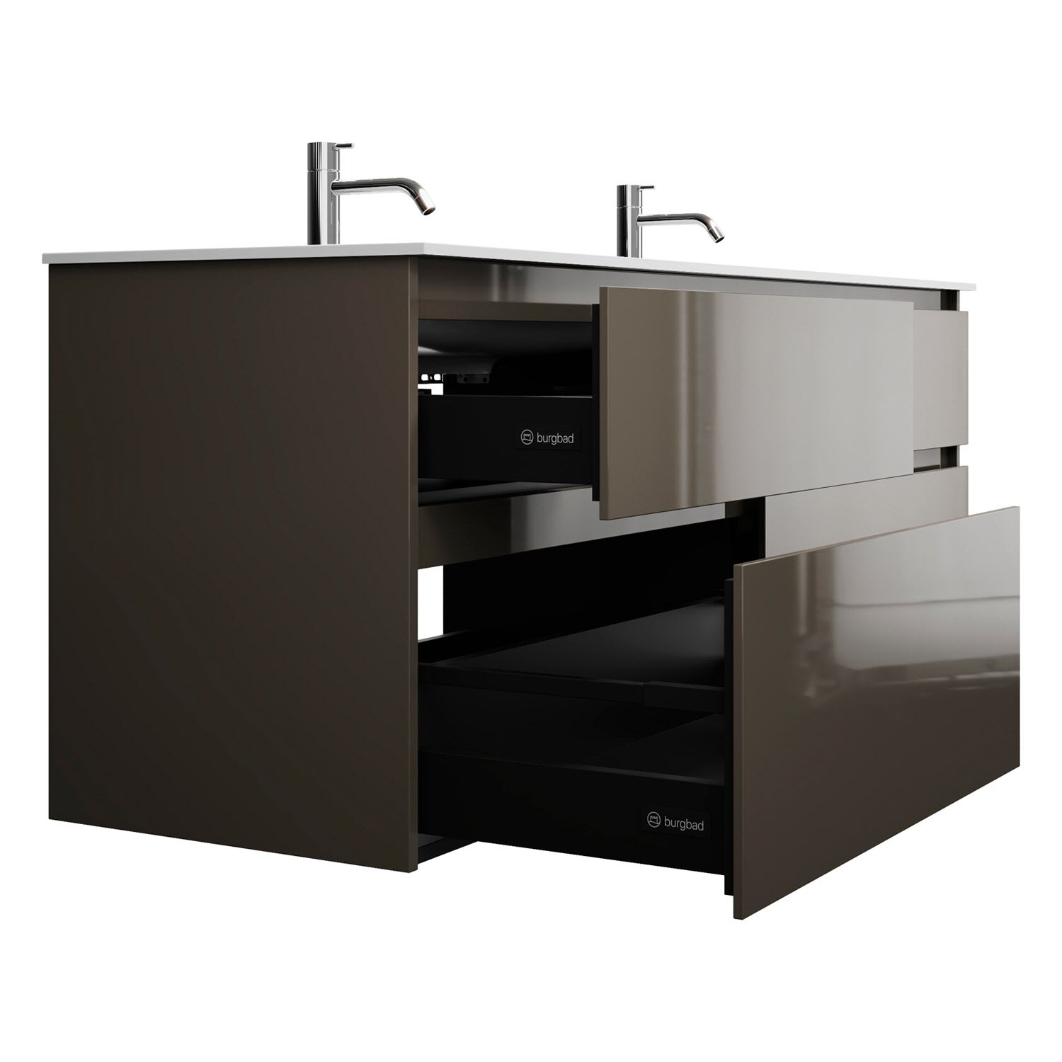 burgbad Lin20 Waschtischunterschrank mit Mineralguss-Doppelwaschtisch 162 cm, 4 Auszüge, links und rechts