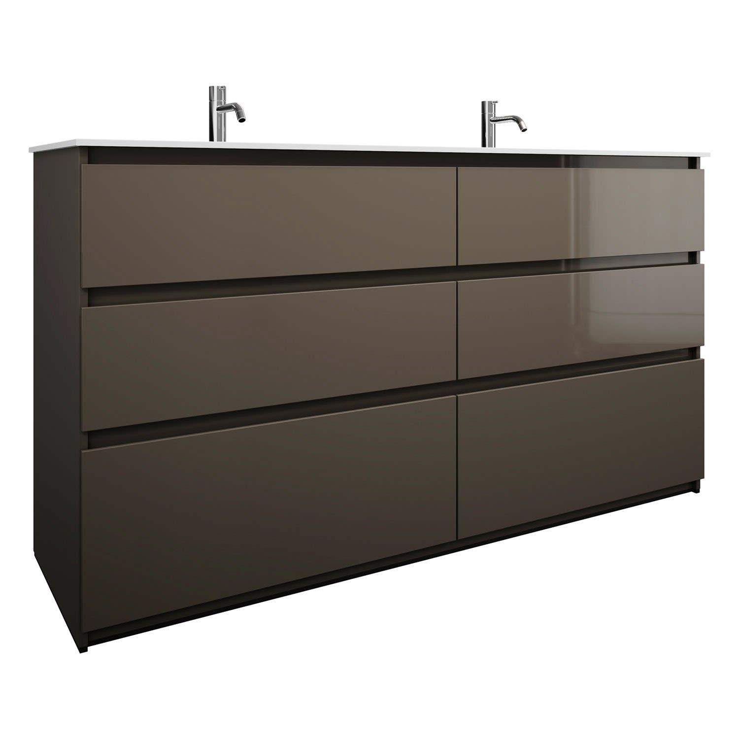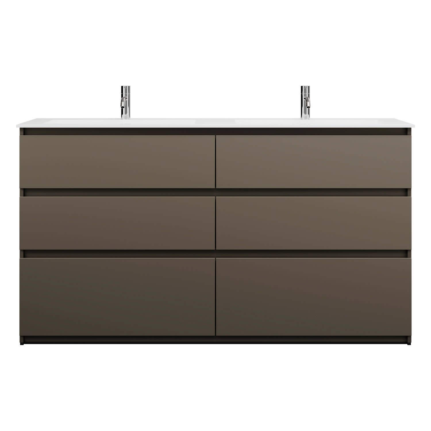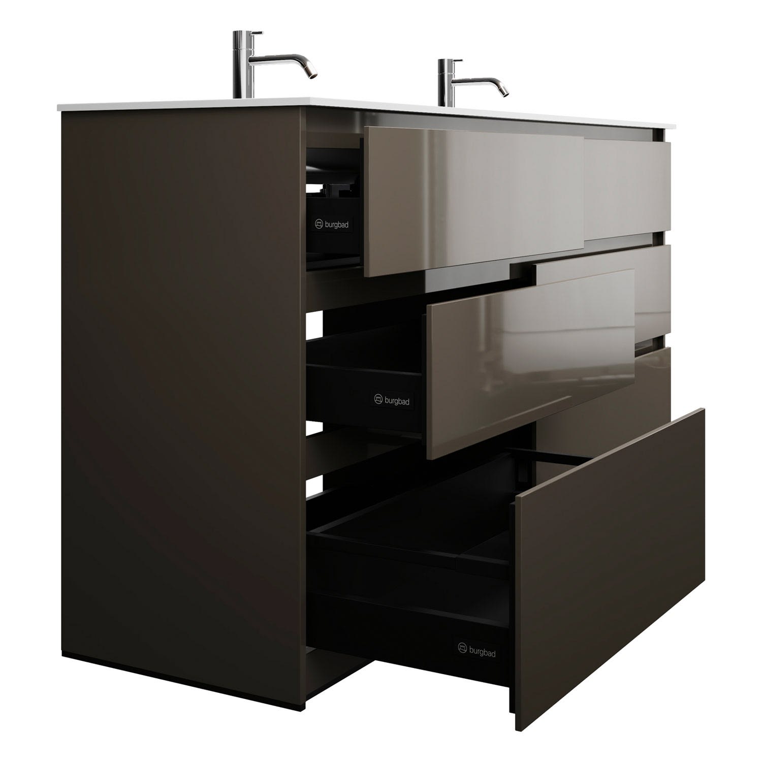 burgbad Lin20 Waschtischunterschrank mit Mineralguss-Doppelwaschtisch 162 cm, 6 Auszüge, links und rechts