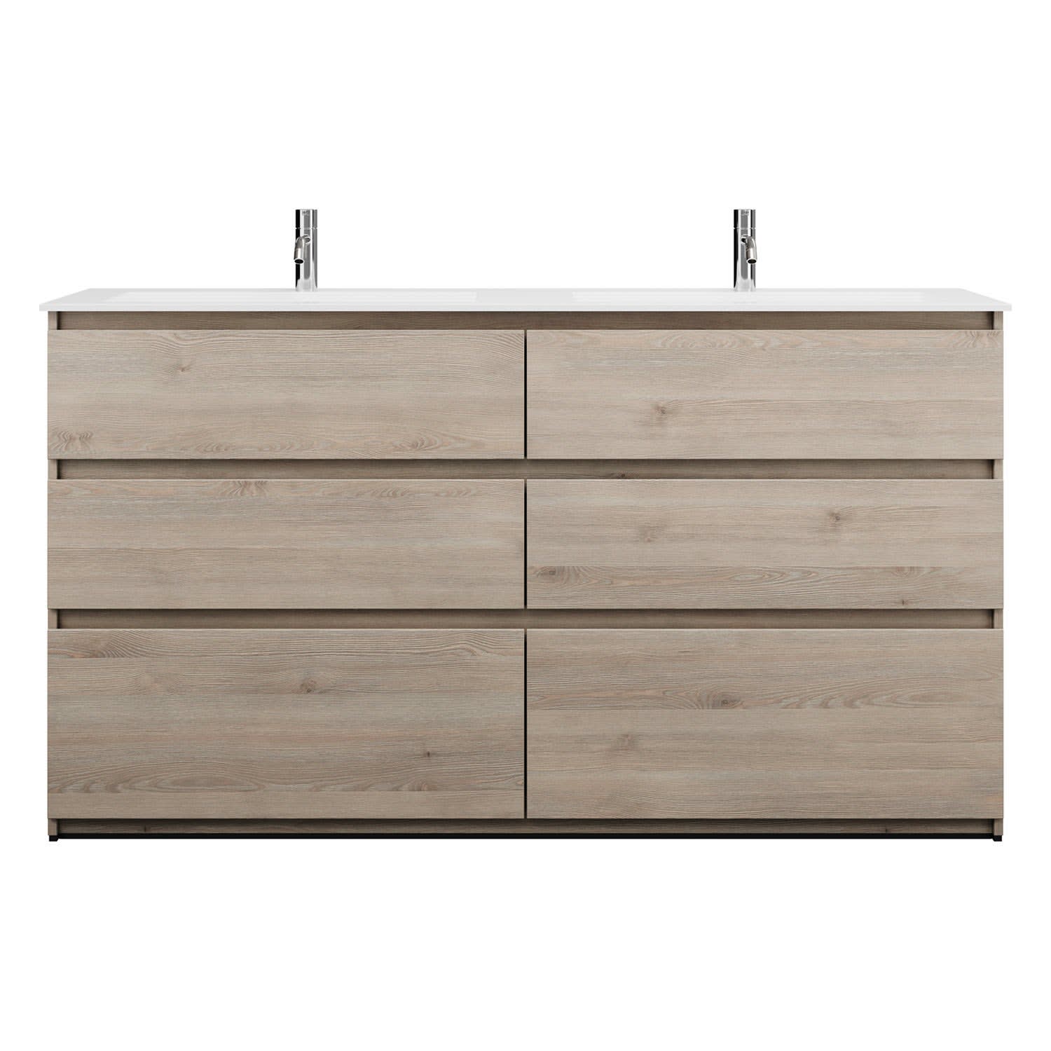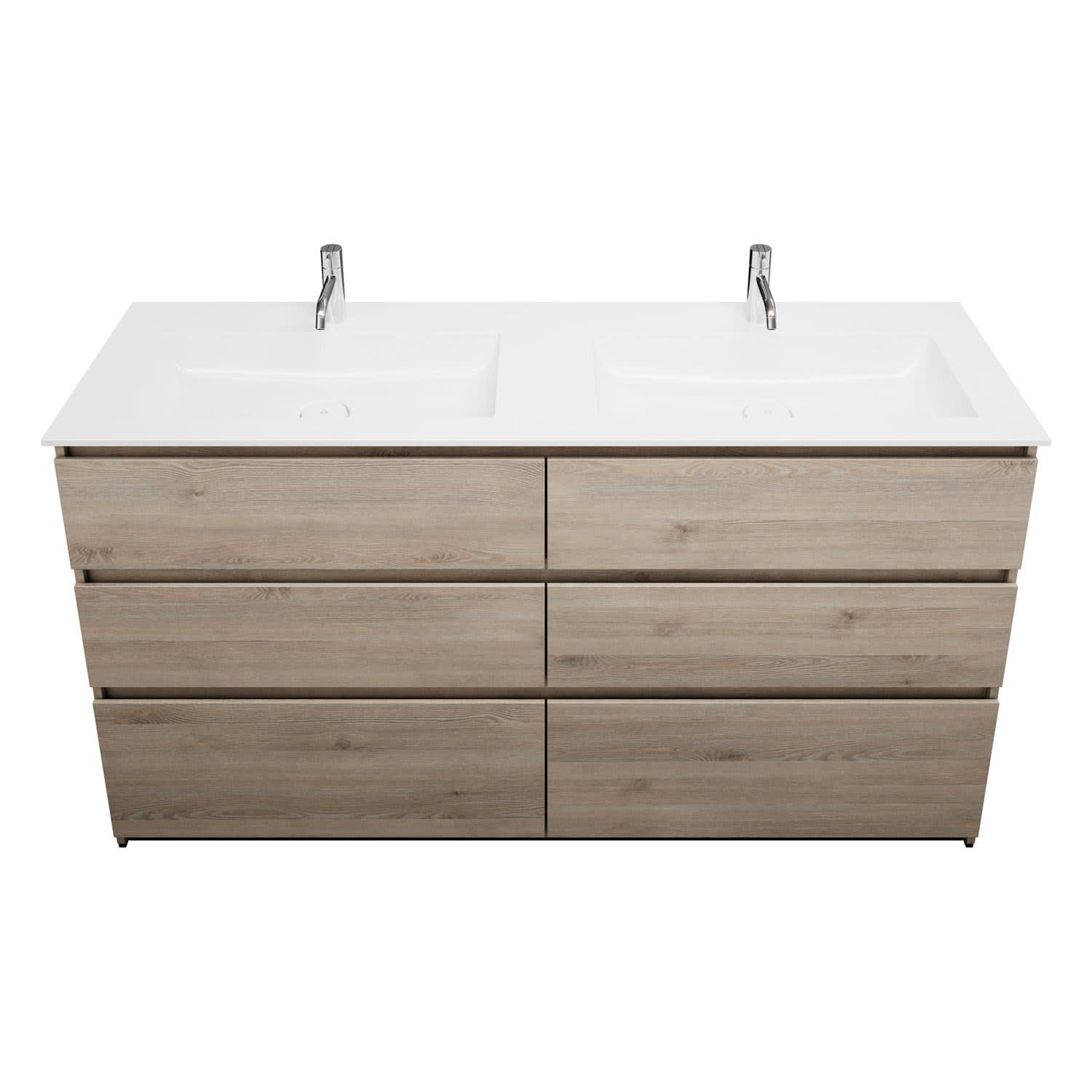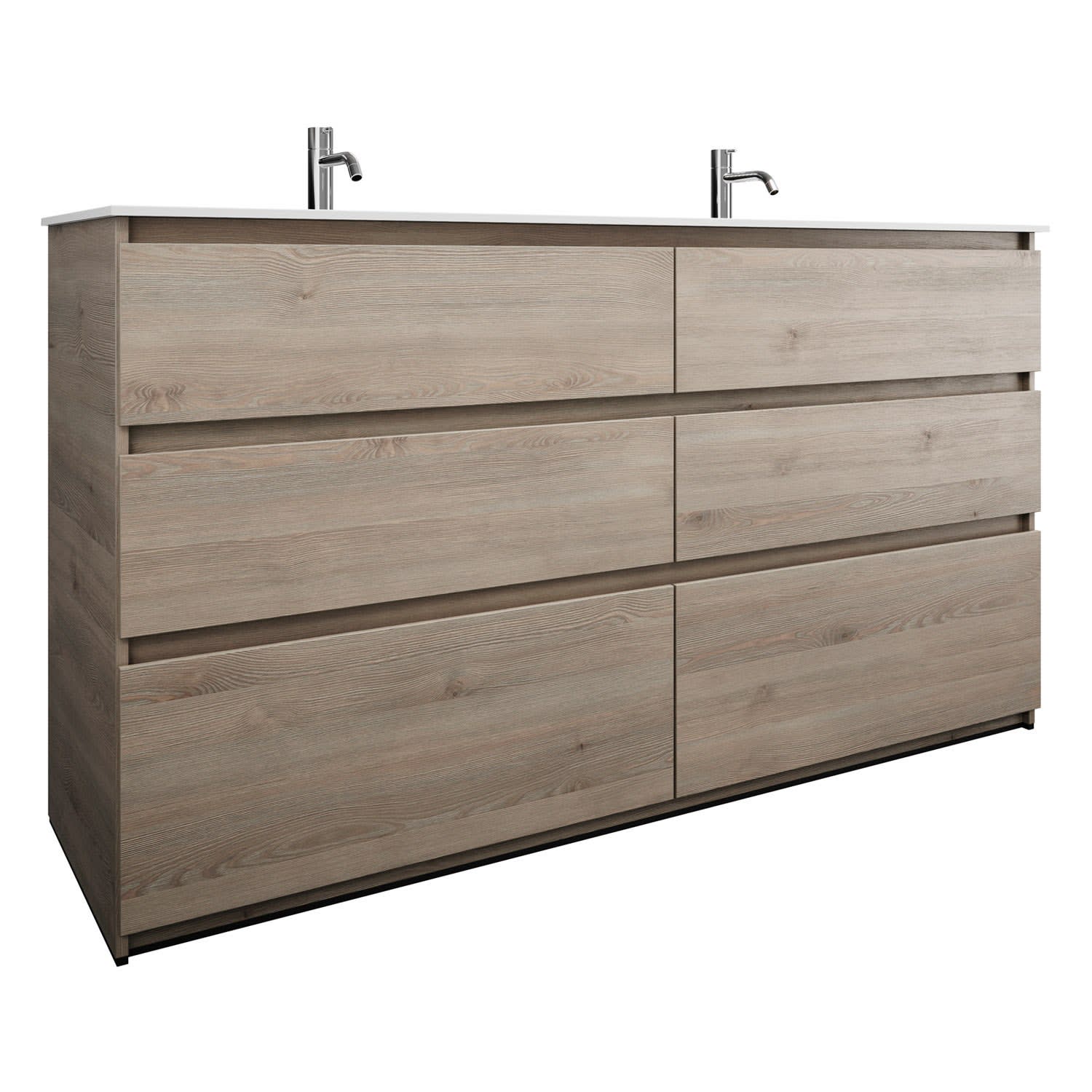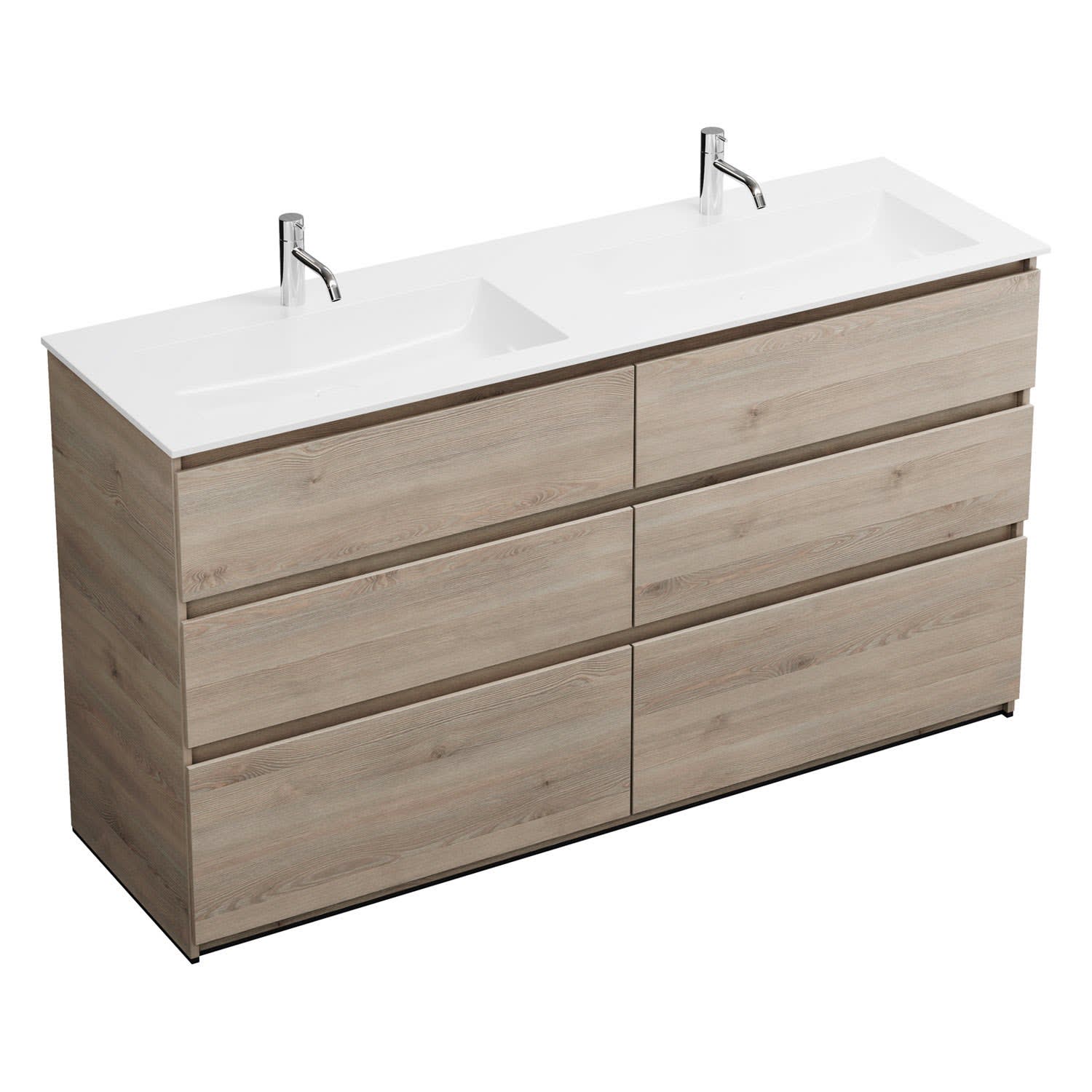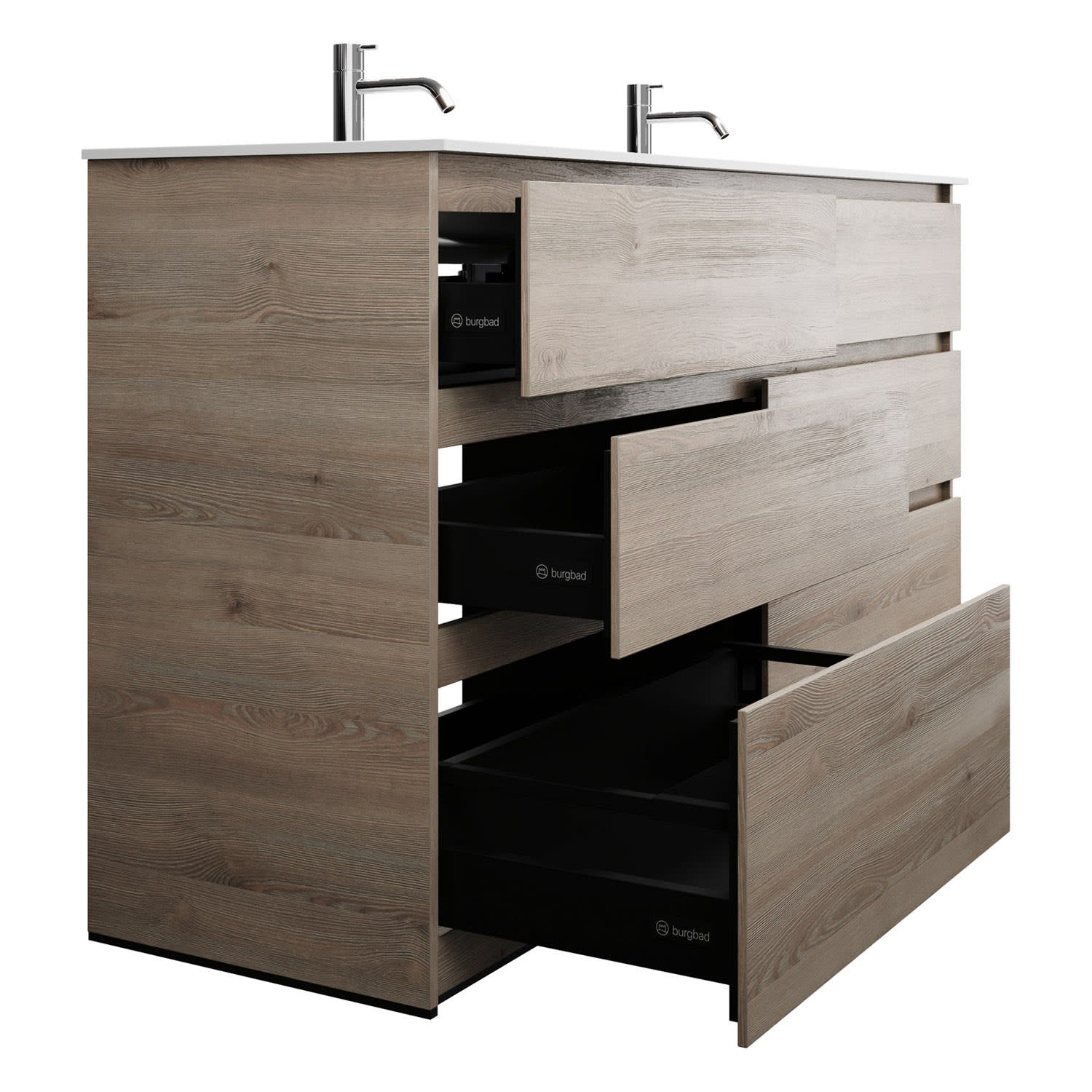 burgbad Lin20 Waschtischunterschrank mit Mineralguss-Doppelwaschtisch 162 cm, 6 Auszüge, links und rechts