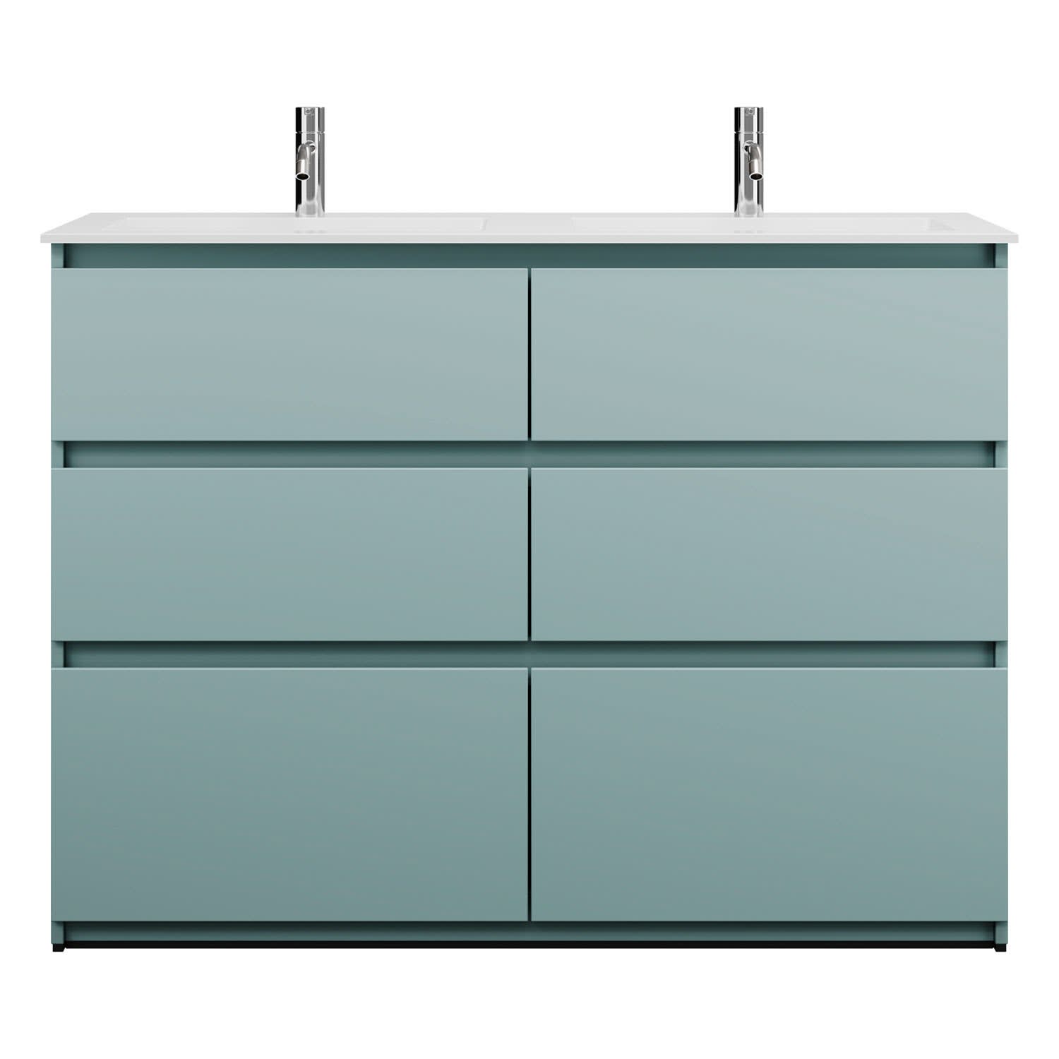burgbad Lin20 Waschtischunterschrank mit Mineralguss-Doppelwaschtisch 122 cm, 6 Auszüge, links und rechts