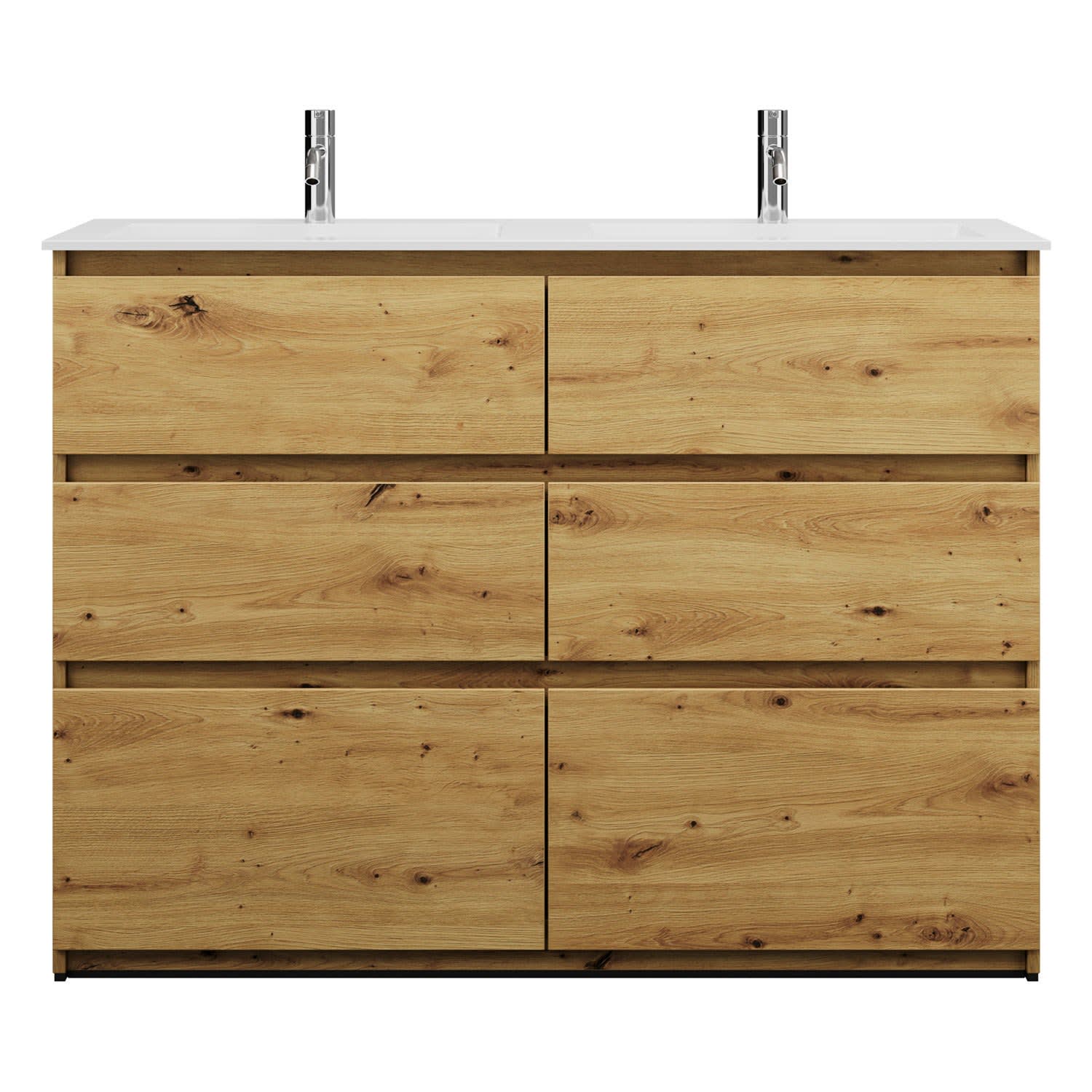 burgbad Lin20 Waschtischunterschrank mit Mineralguss-Doppelwaschtisch 122 cm, 6 Auszüge, links und rechts
