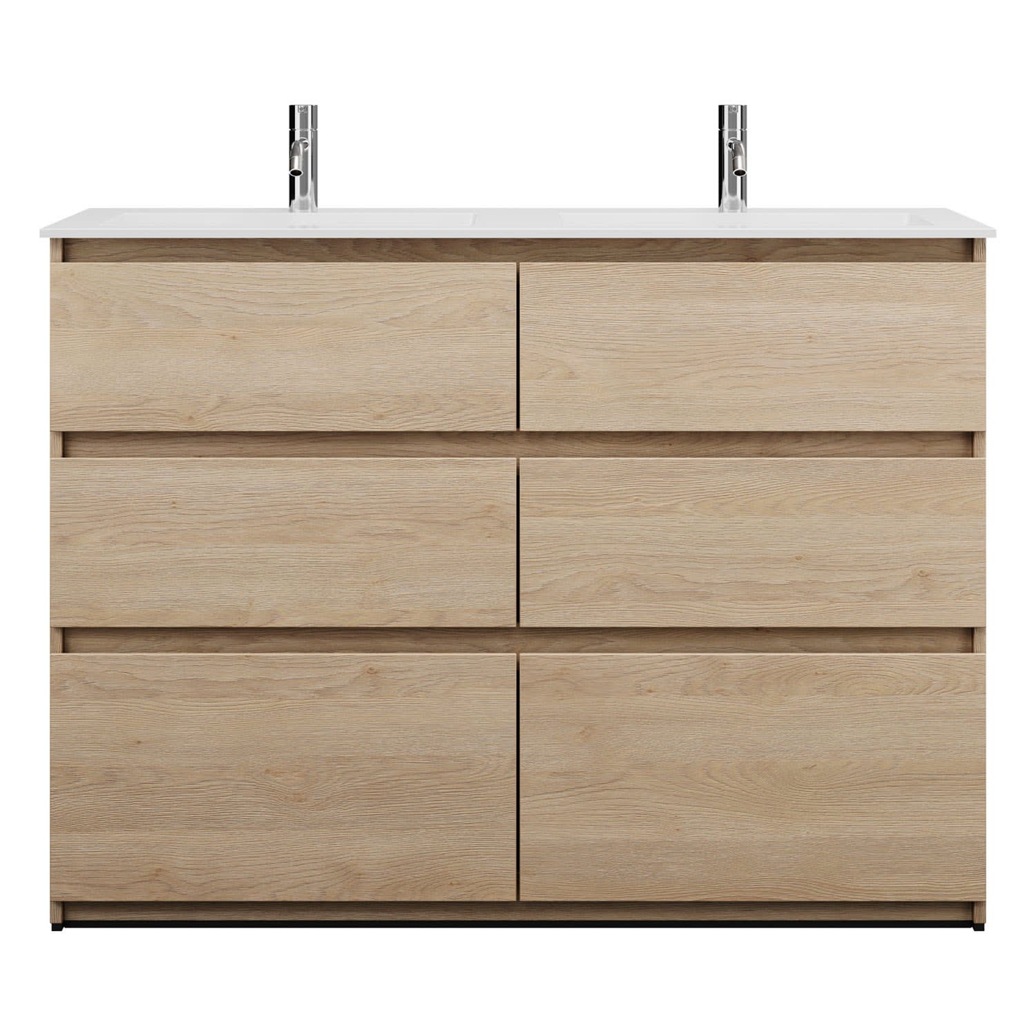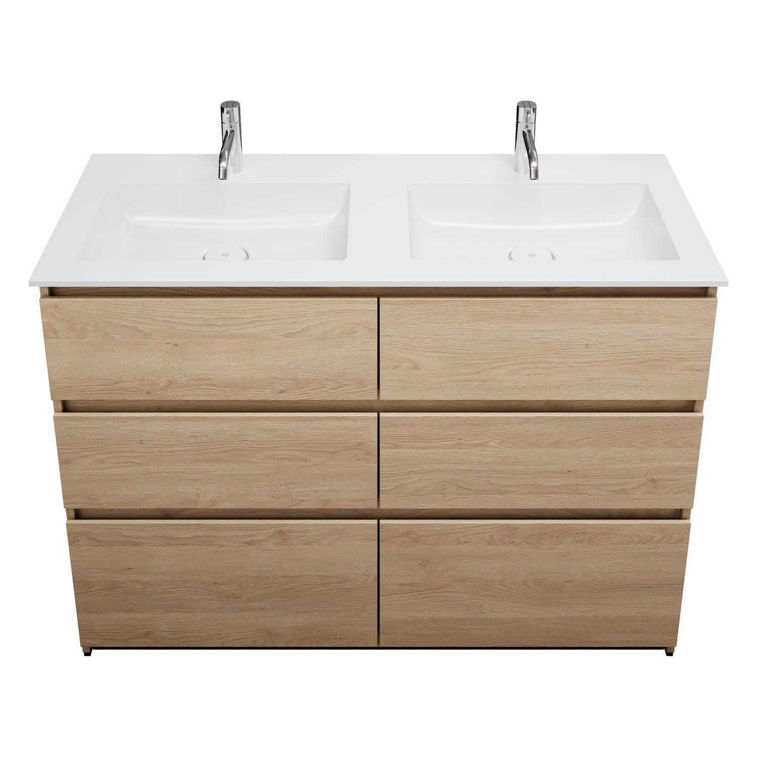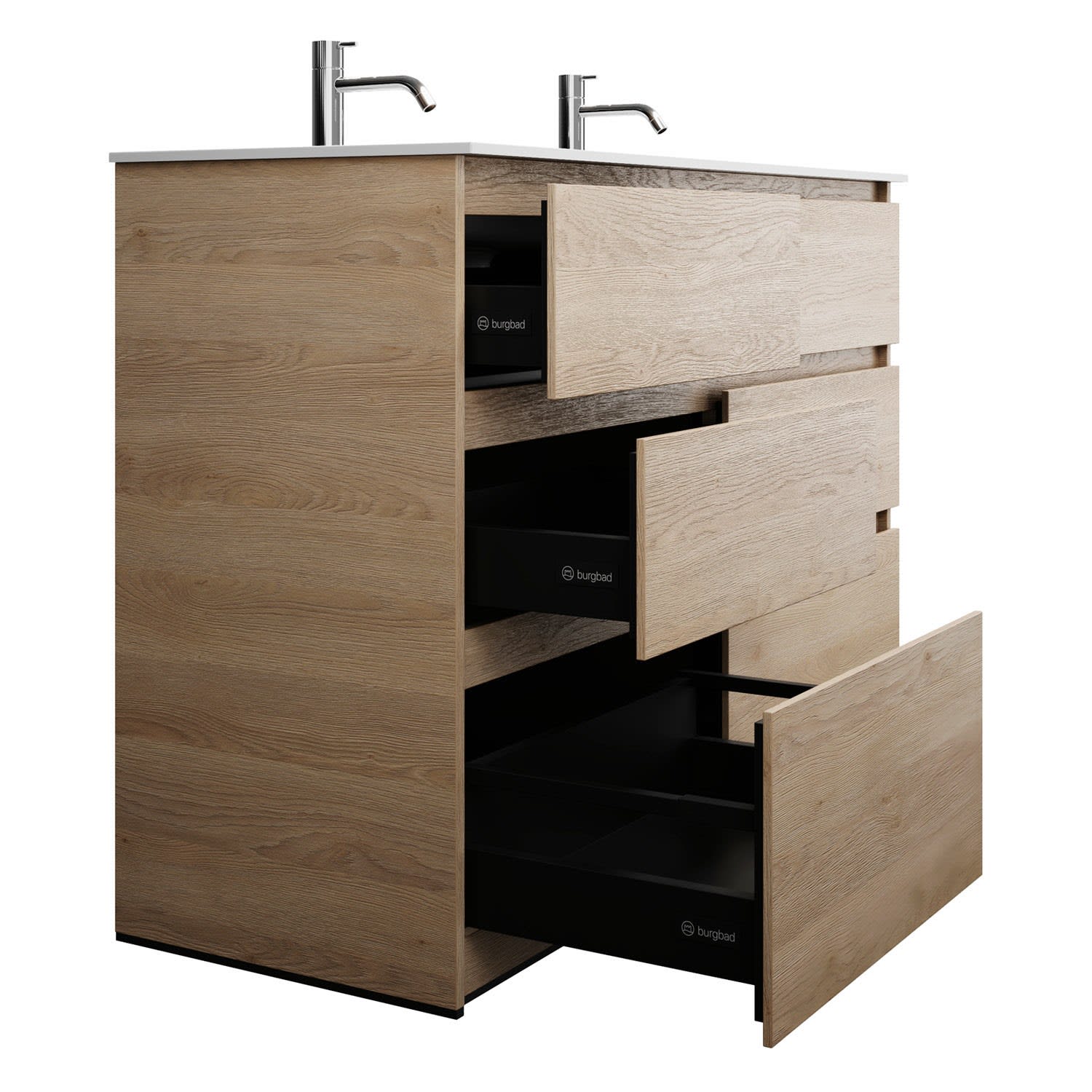 burgbad Lin20 Waschtischunterschrank mit Mineralguss-Doppelwaschtisch 122 cm, 6 Auszüge, links und rechts