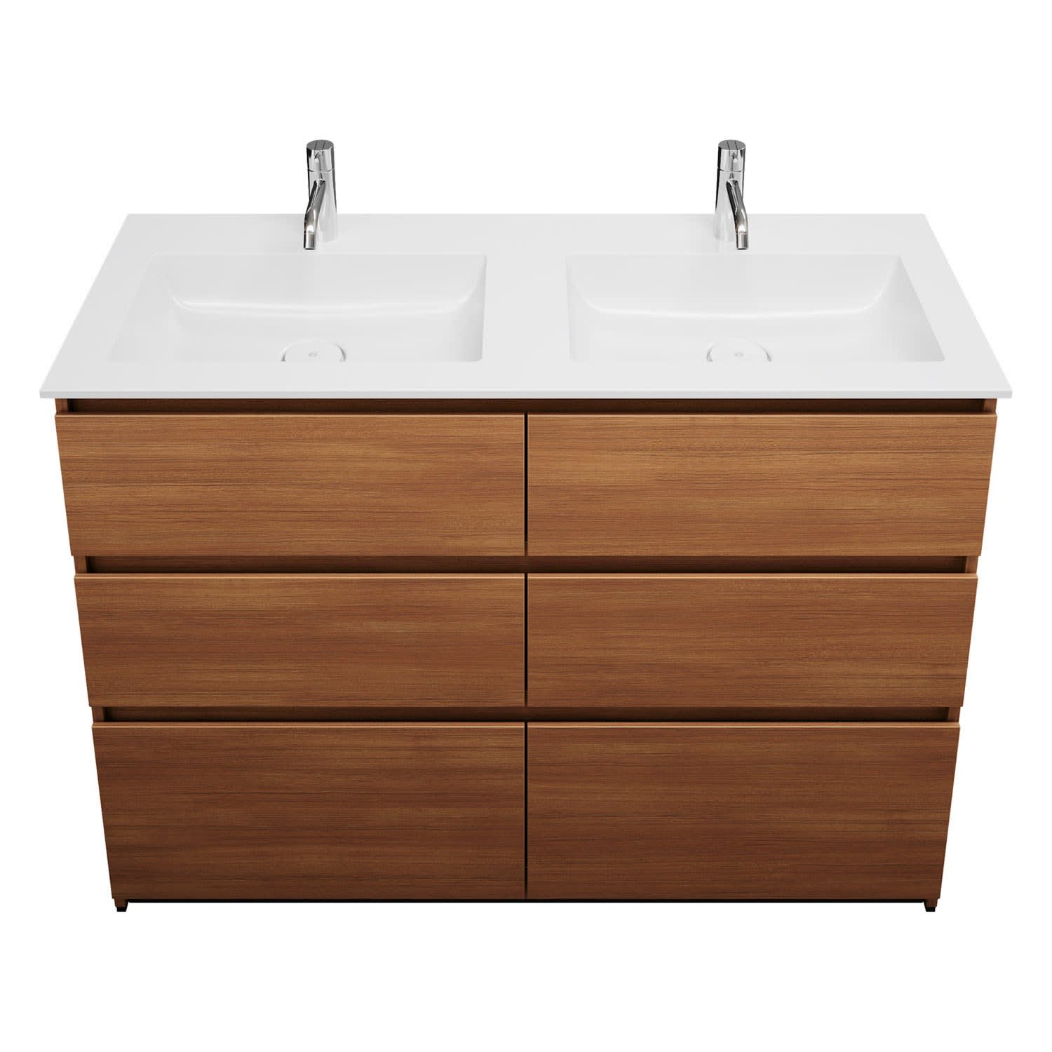 burgbad Lin20 Waschtischunterschrank mit Mineralguss-Doppelwaschtisch 122 cm, 6 Auszüge, links und rechts