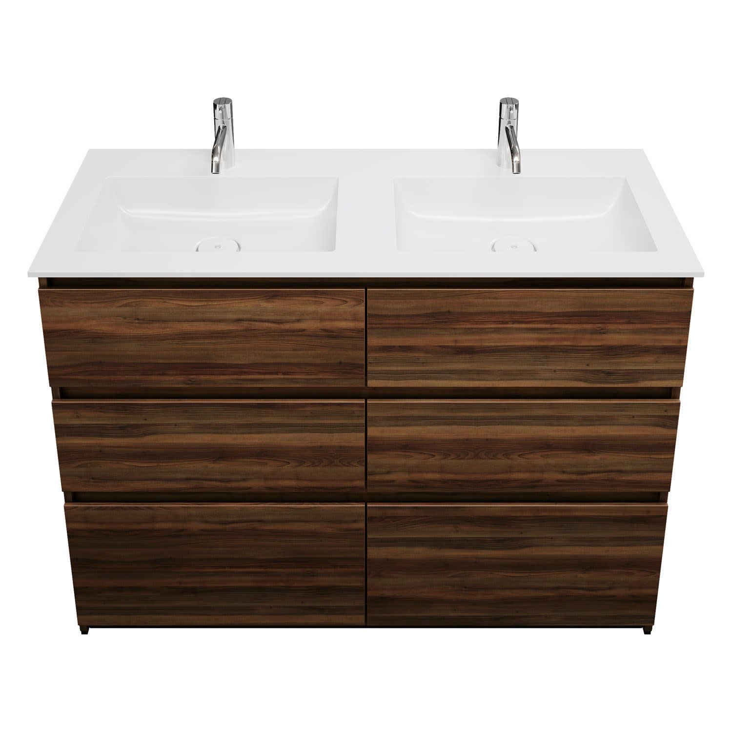 burgbad Lin20 Waschtischunterschrank mit Mineralguss-Doppelwaschtisch 122 cm, 6 Auszüge, links und rechts