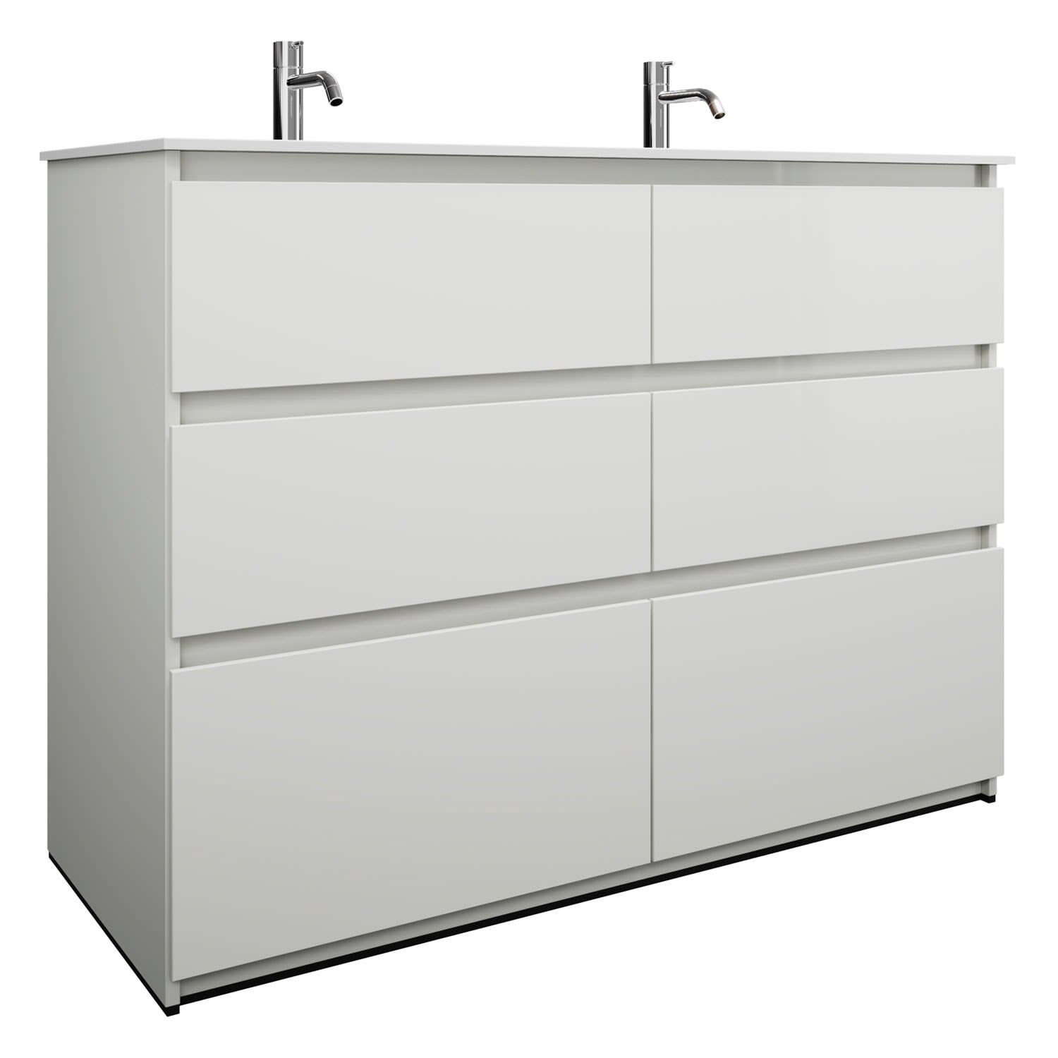 burgbad Lin20 Waschtischunterschrank mit Mineralguss-Doppelwaschtisch 122 cm, 6 Auszüge, links und rechts
