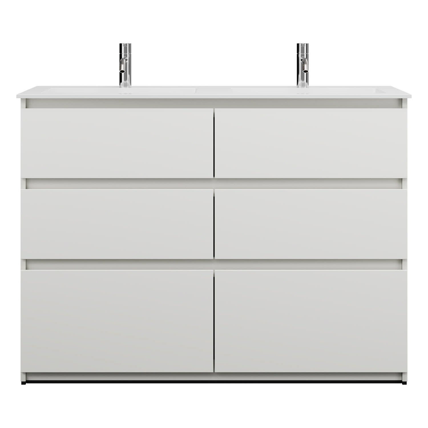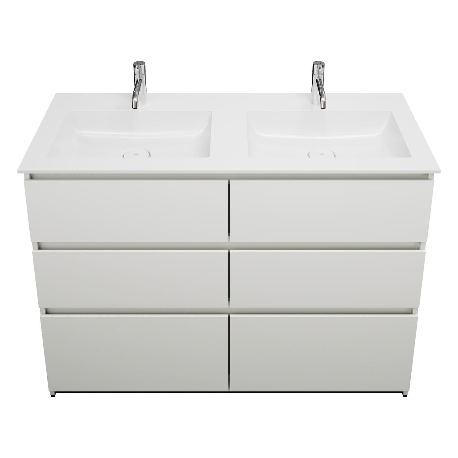 burgbad Lin20 Waschtischunterschrank mit Mineralguss-Doppelwaschtisch 122 cm, 6 Auszüge, links und rechts