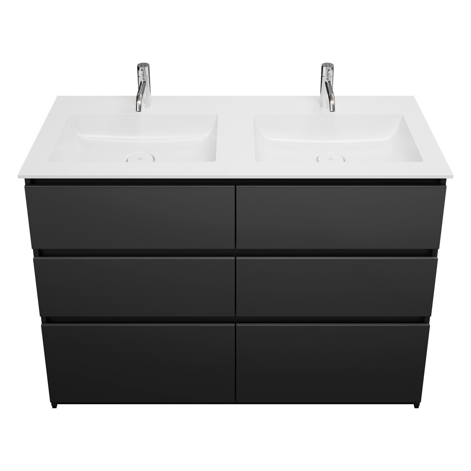 burgbad Lin20 Waschtischunterschrank mit Mineralguss-Doppelwaschtisch 122 cm, 6 Auszüge, links und rechts