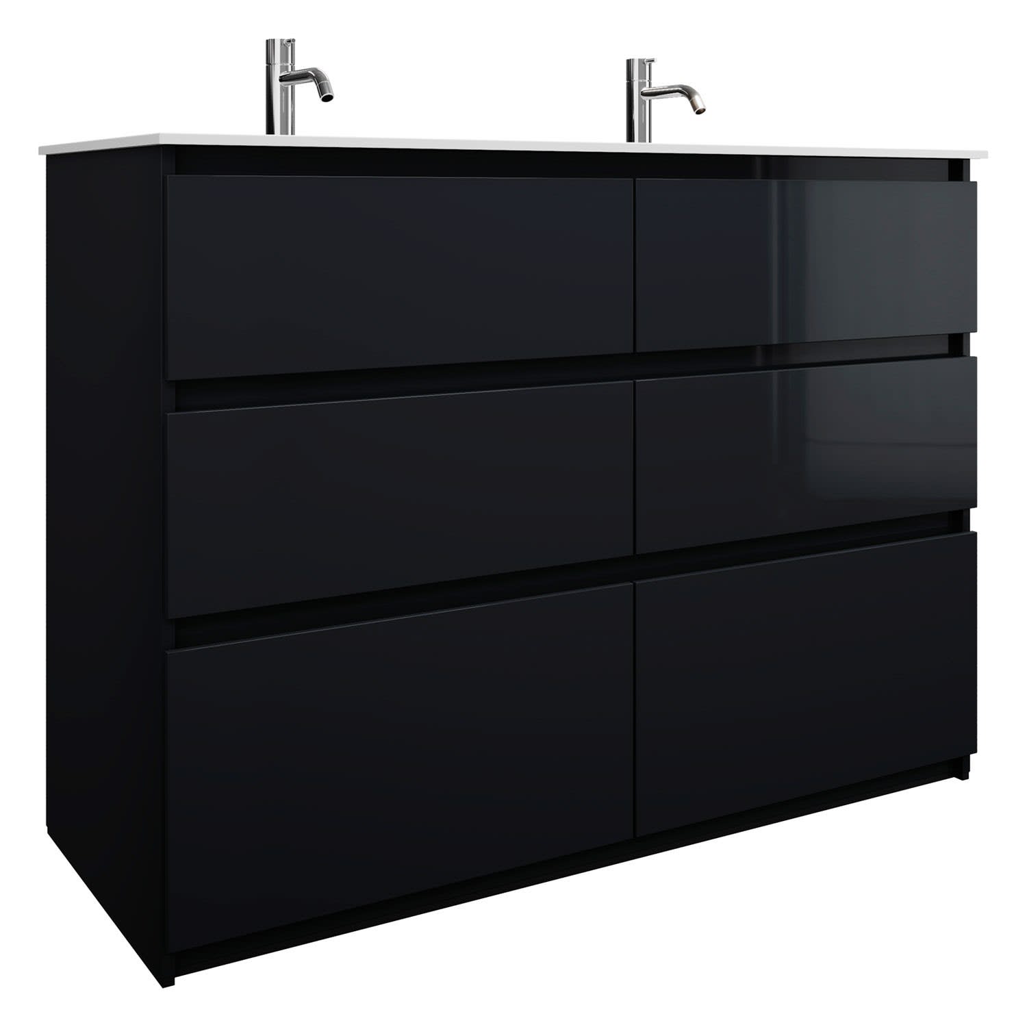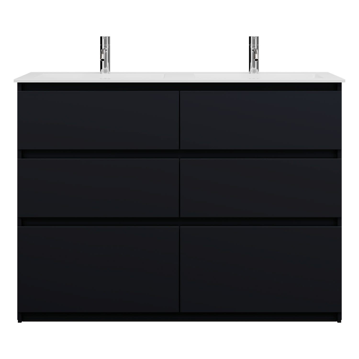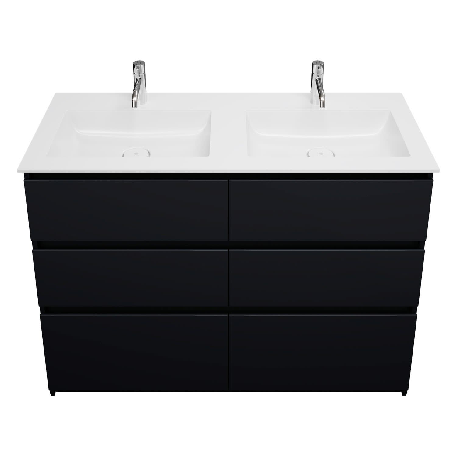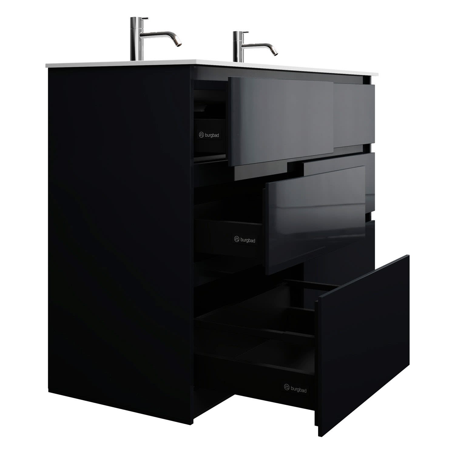 burgbad Lin20 Waschtischunterschrank mit Mineralguss-Doppelwaschtisch 122 cm, 6 Auszüge, links und rechts