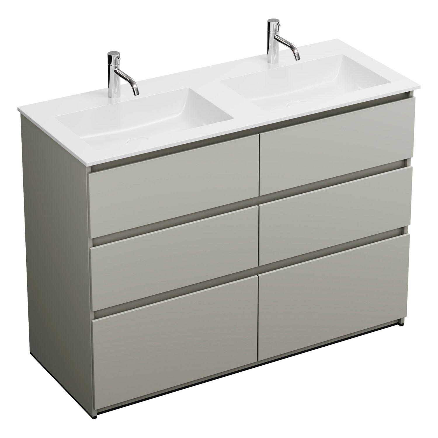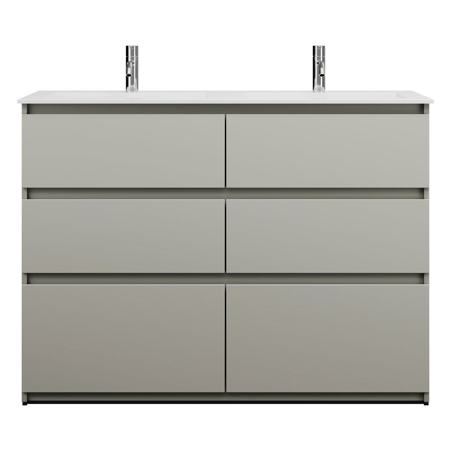 burgbad Lin20 Waschtischunterschrank mit Mineralguss-Doppelwaschtisch 122 cm, 6 Auszüge, links und rechts