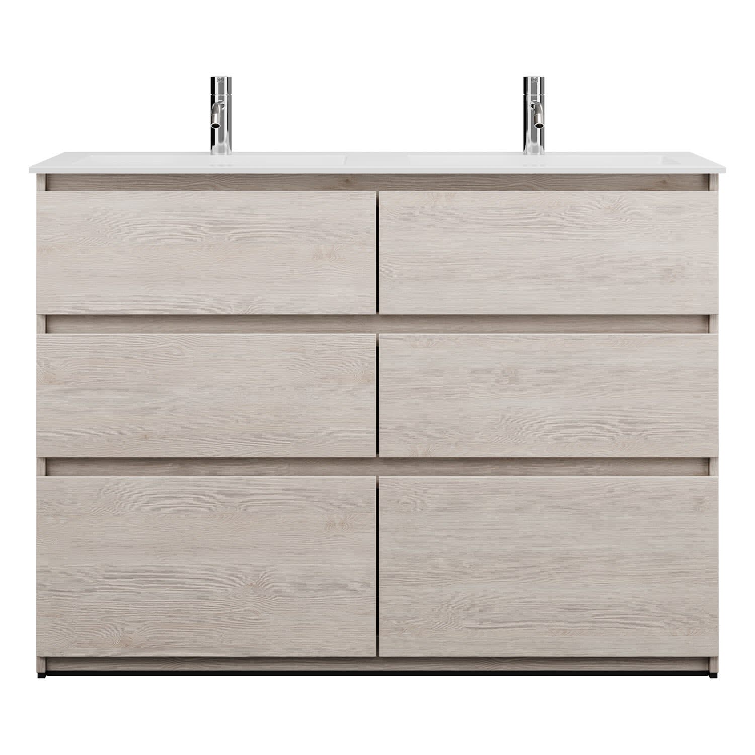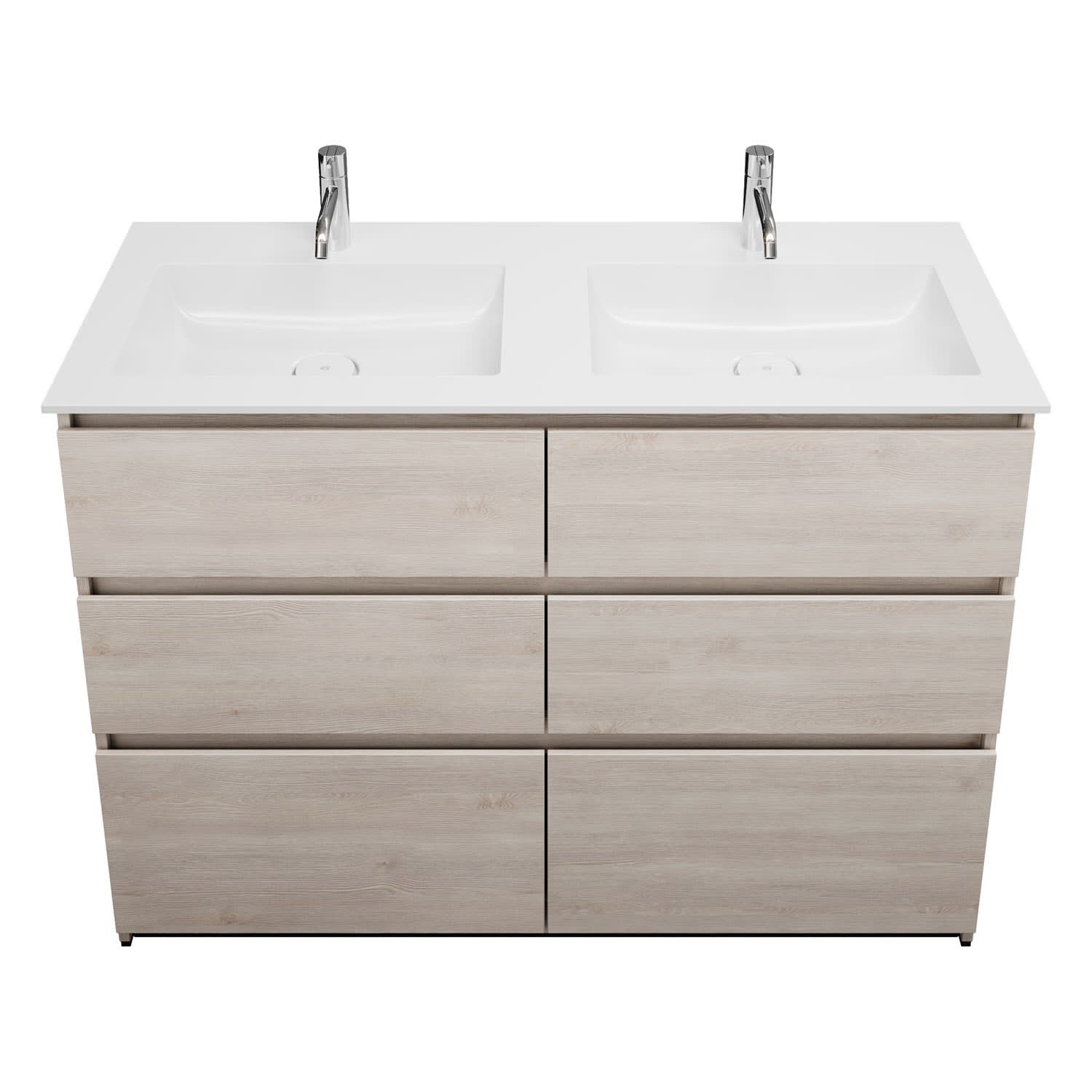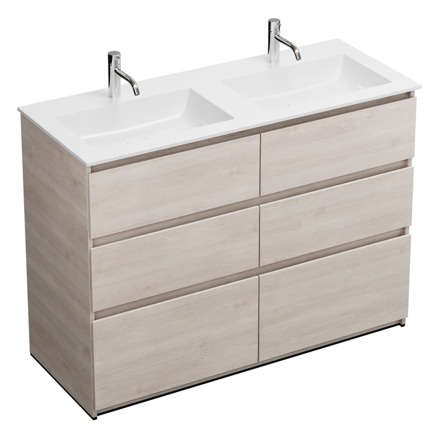 burgbad Lin20 Waschtischunterschrank mit Mineralguss-Doppelwaschtisch 122 cm, 6 Auszüge, links und rechts