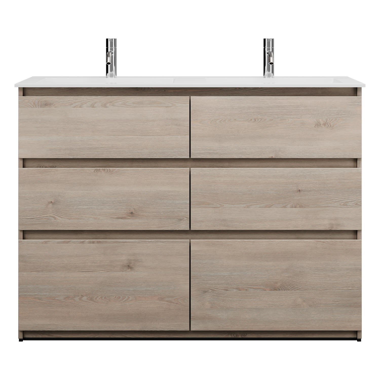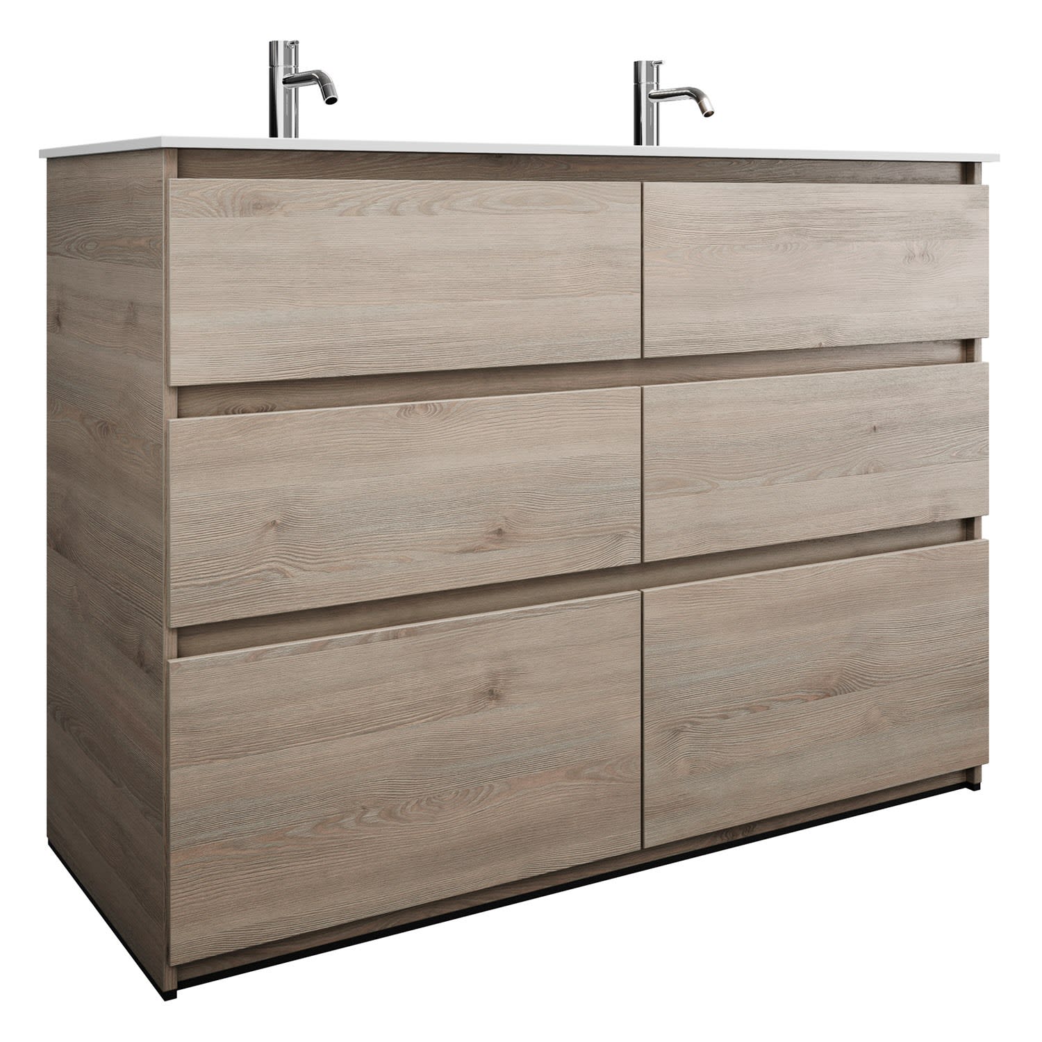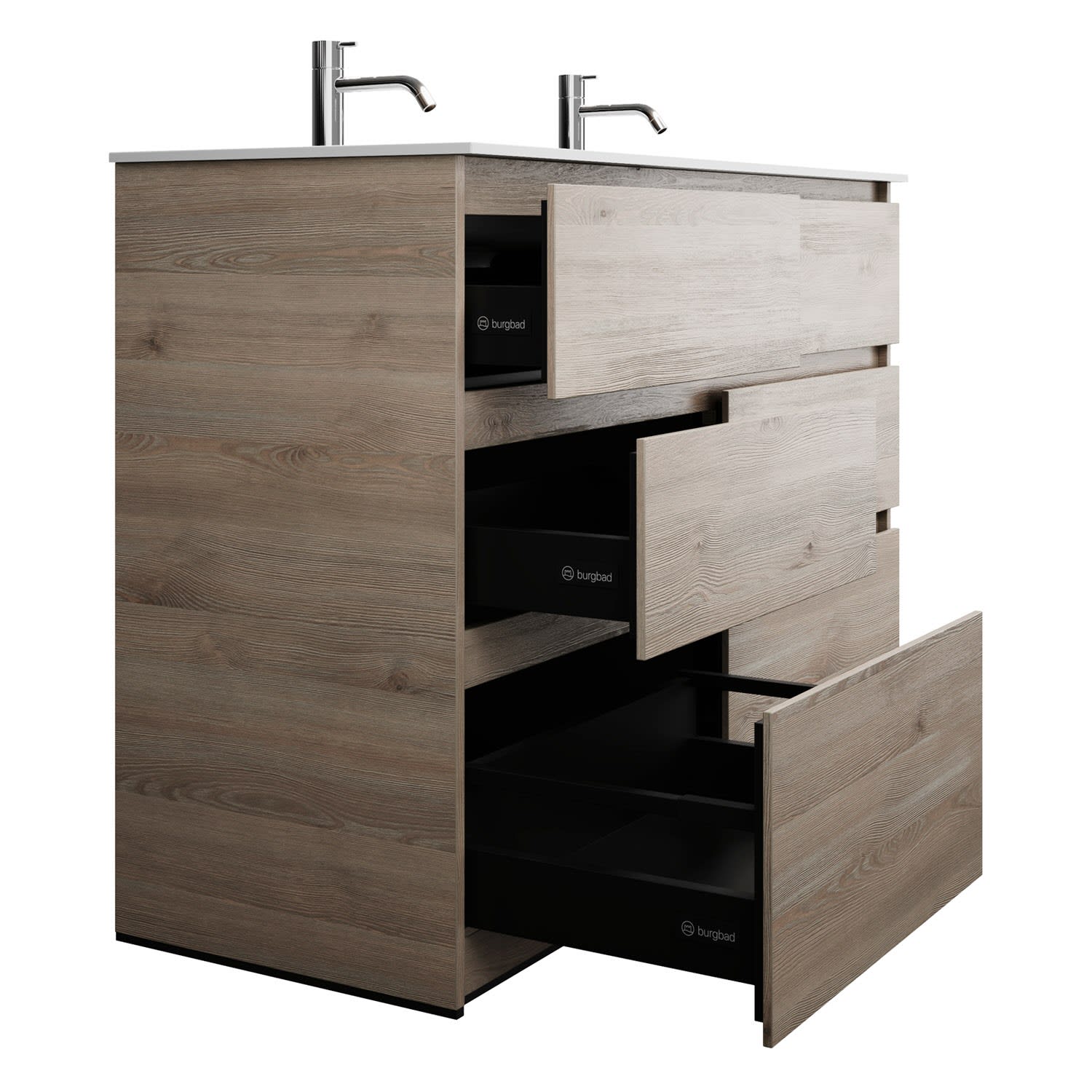 burgbad Lin20 Waschtischunterschrank mit Mineralguss-Doppelwaschtisch 122 cm, 6 Auszüge, links und rechts
