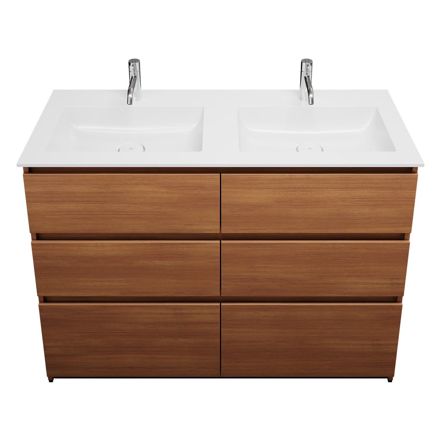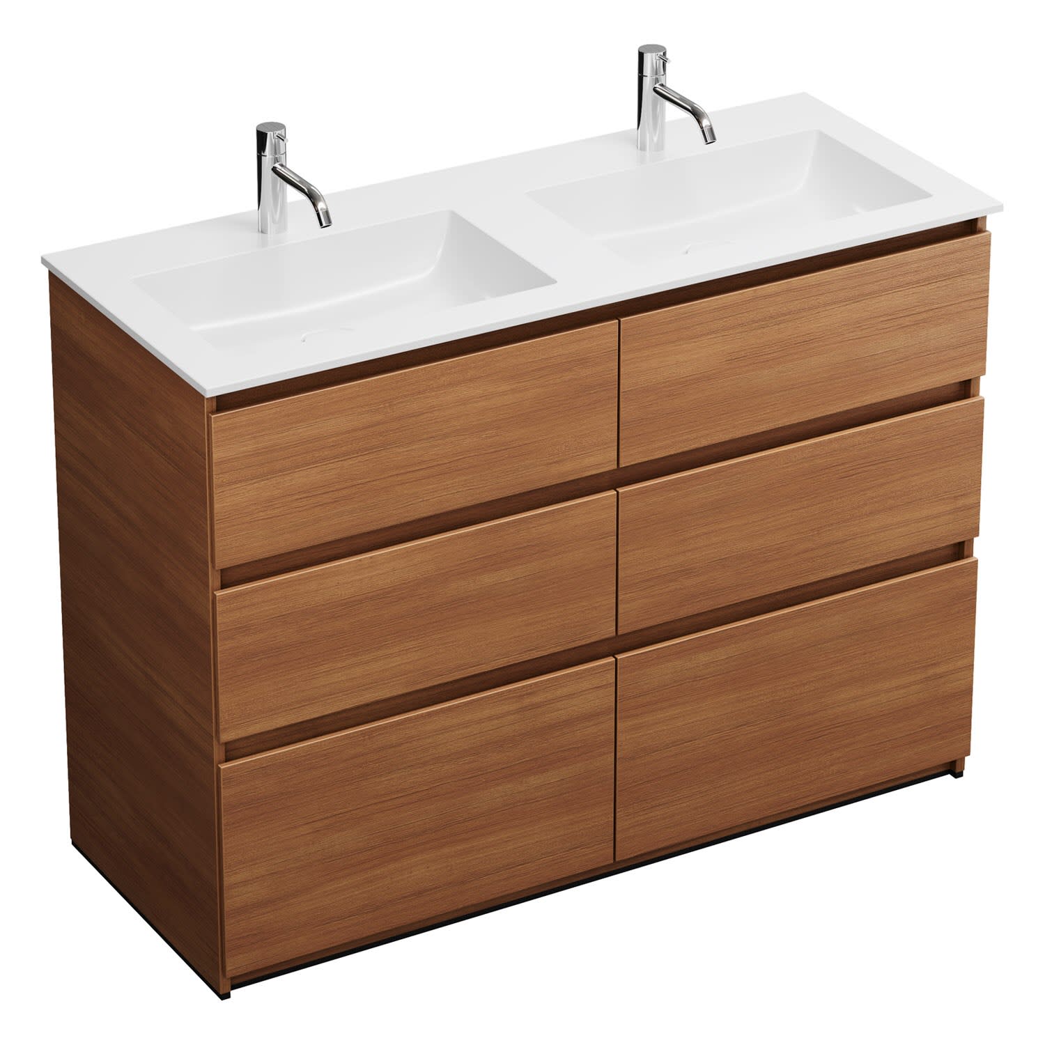 burgbad Lin20 Waschtischunterschrank mit Mineralguss-Doppelwaschtisch 122 cm, 6 Auszüge, links und rechts