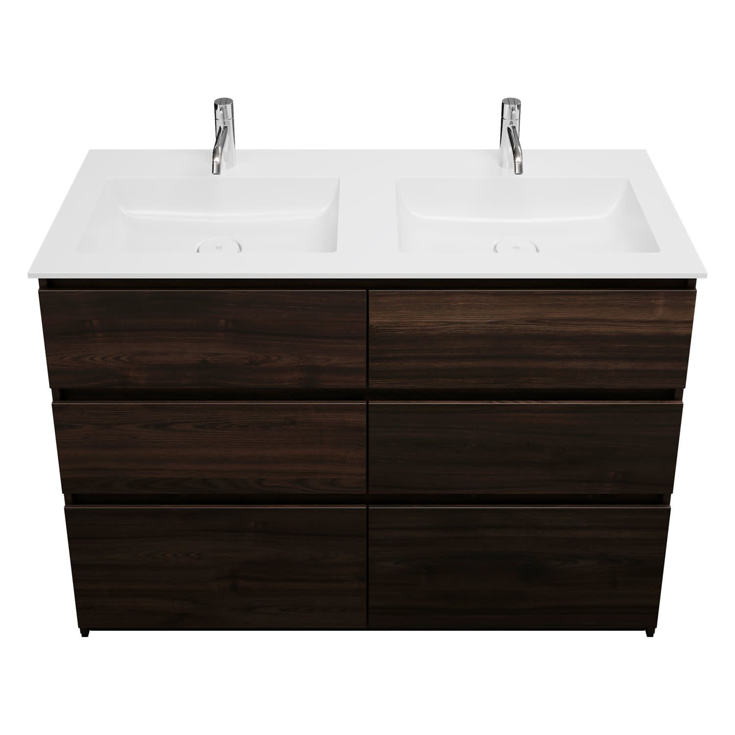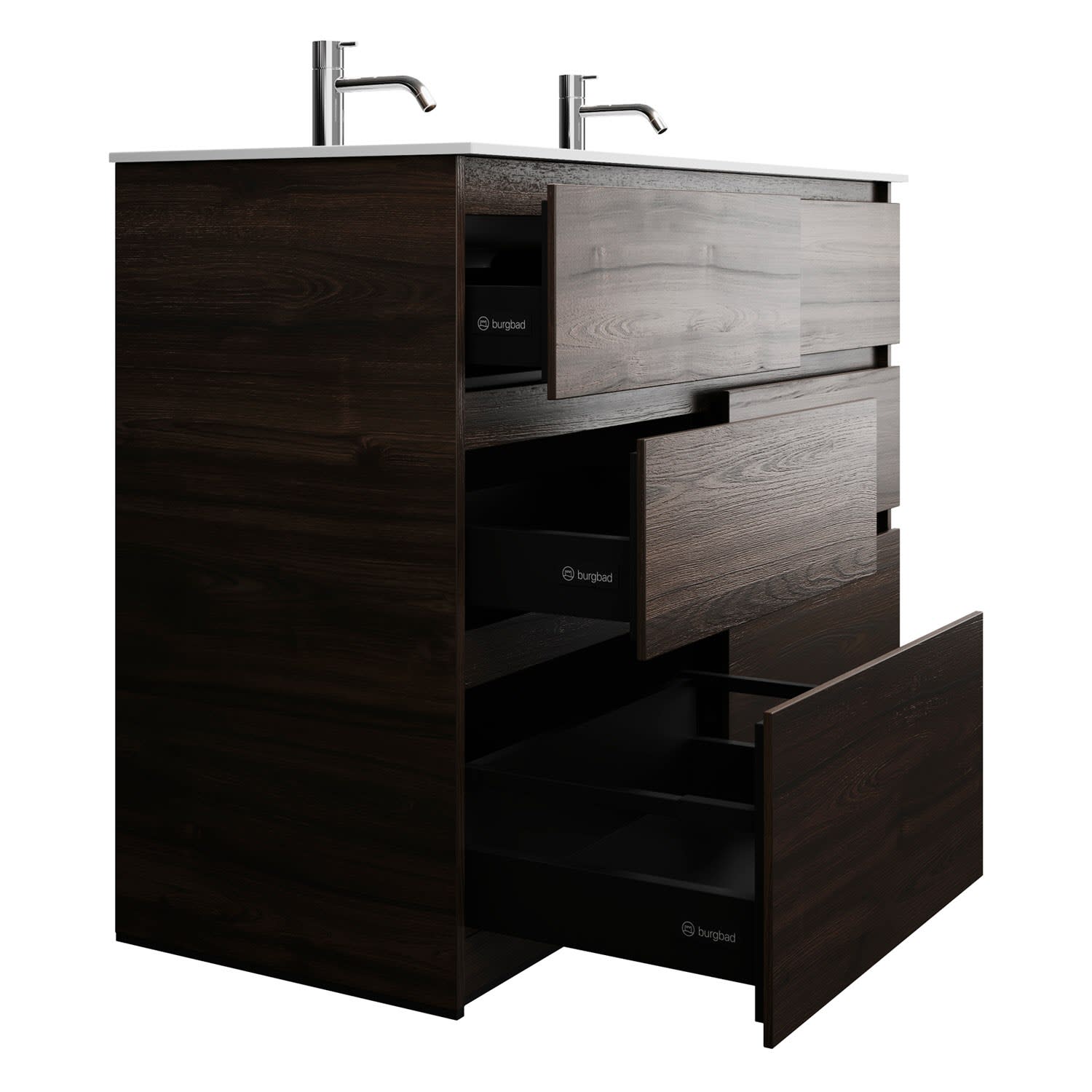 burgbad Lin20 Waschtischunterschrank mit Mineralguss-Doppelwaschtisch 122 cm, 6 Auszüge, links und rechts