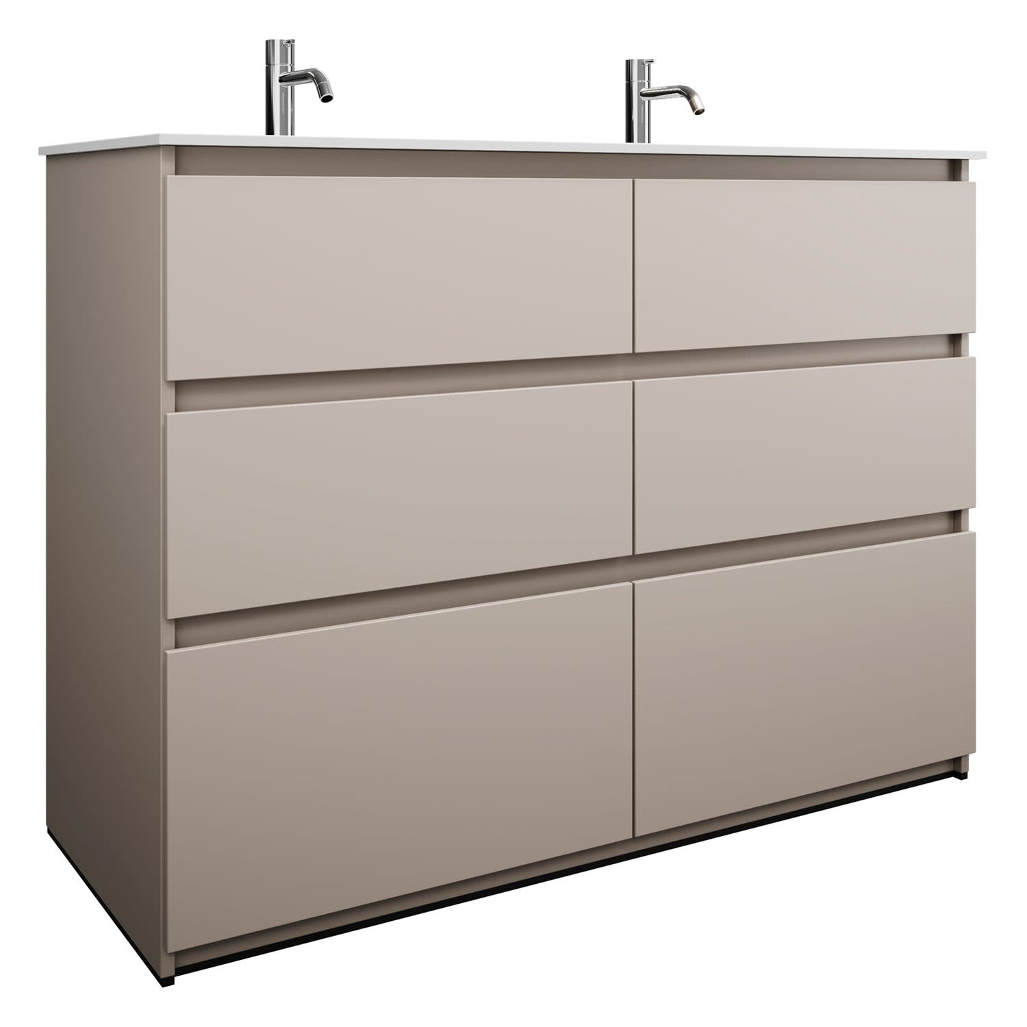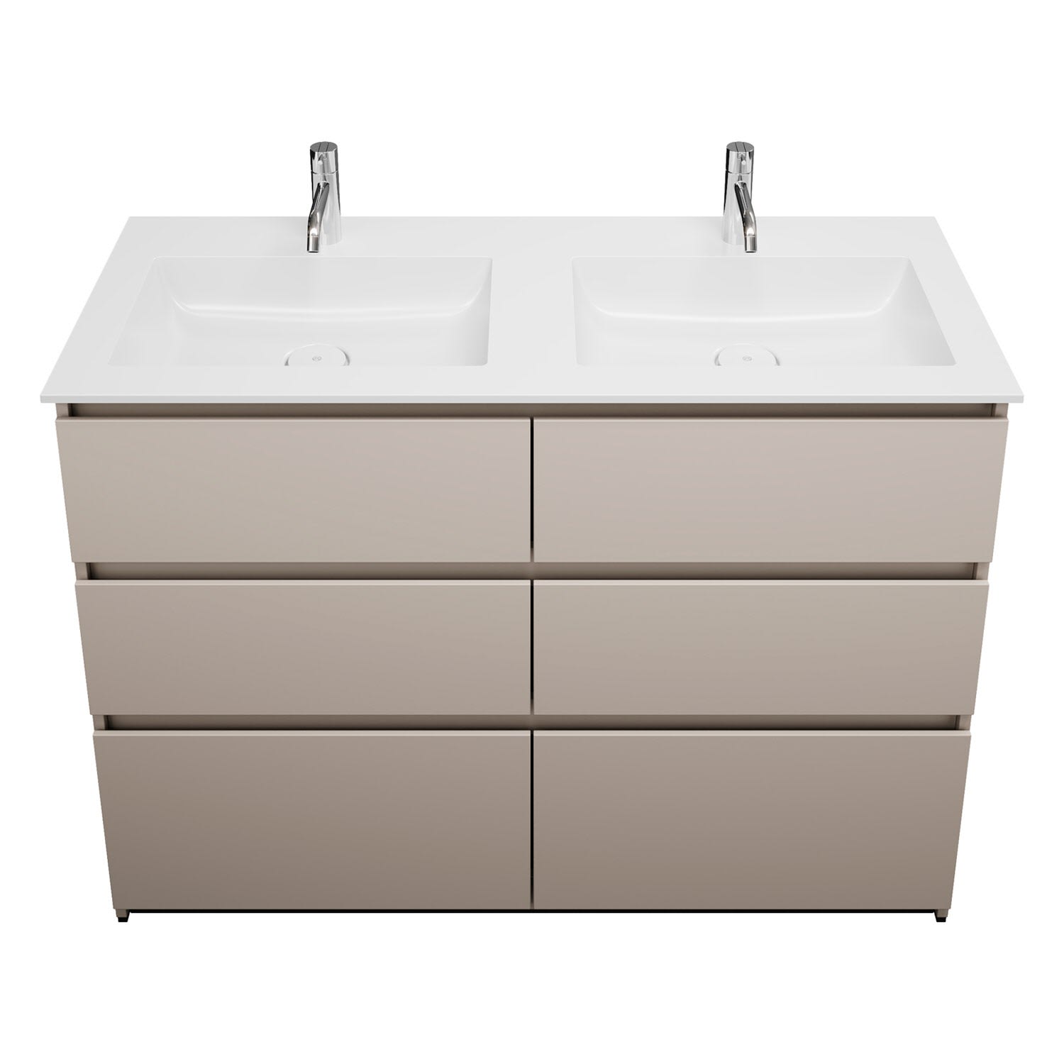 burgbad Lin20 Waschtischunterschrank mit Mineralguss-Doppelwaschtisch 122 cm, 6 Auszüge, links und rechts