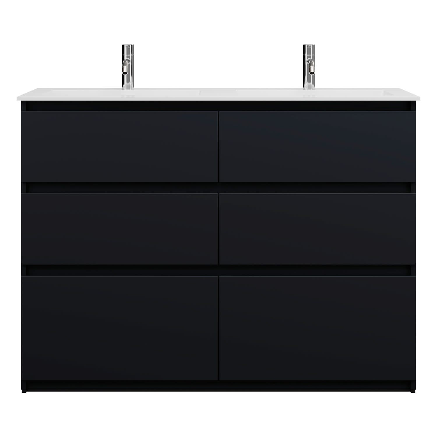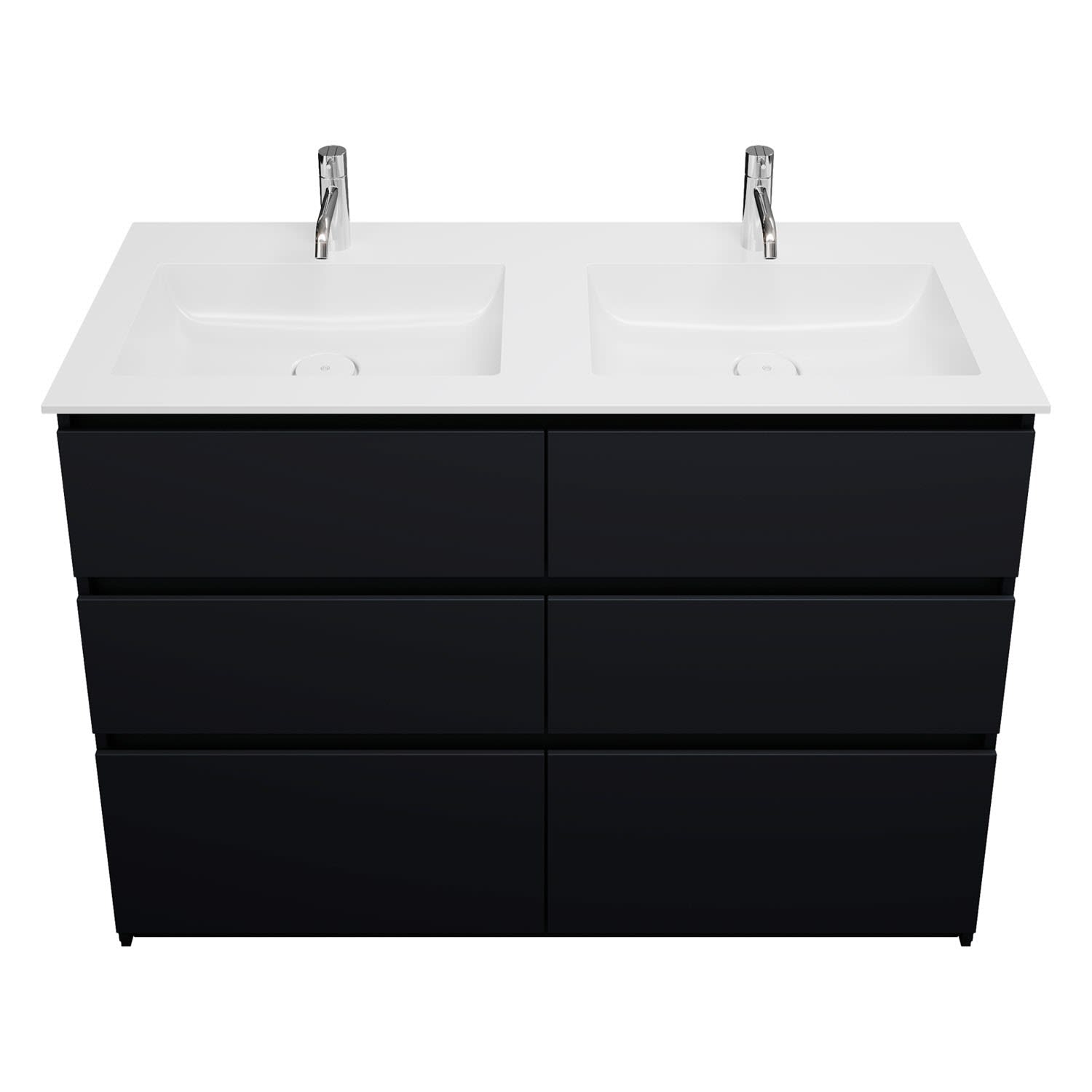 burgbad Lin20 Waschtischunterschrank mit Mineralguss-Doppelwaschtisch 122 cm, 6 Auszüge, links und rechts