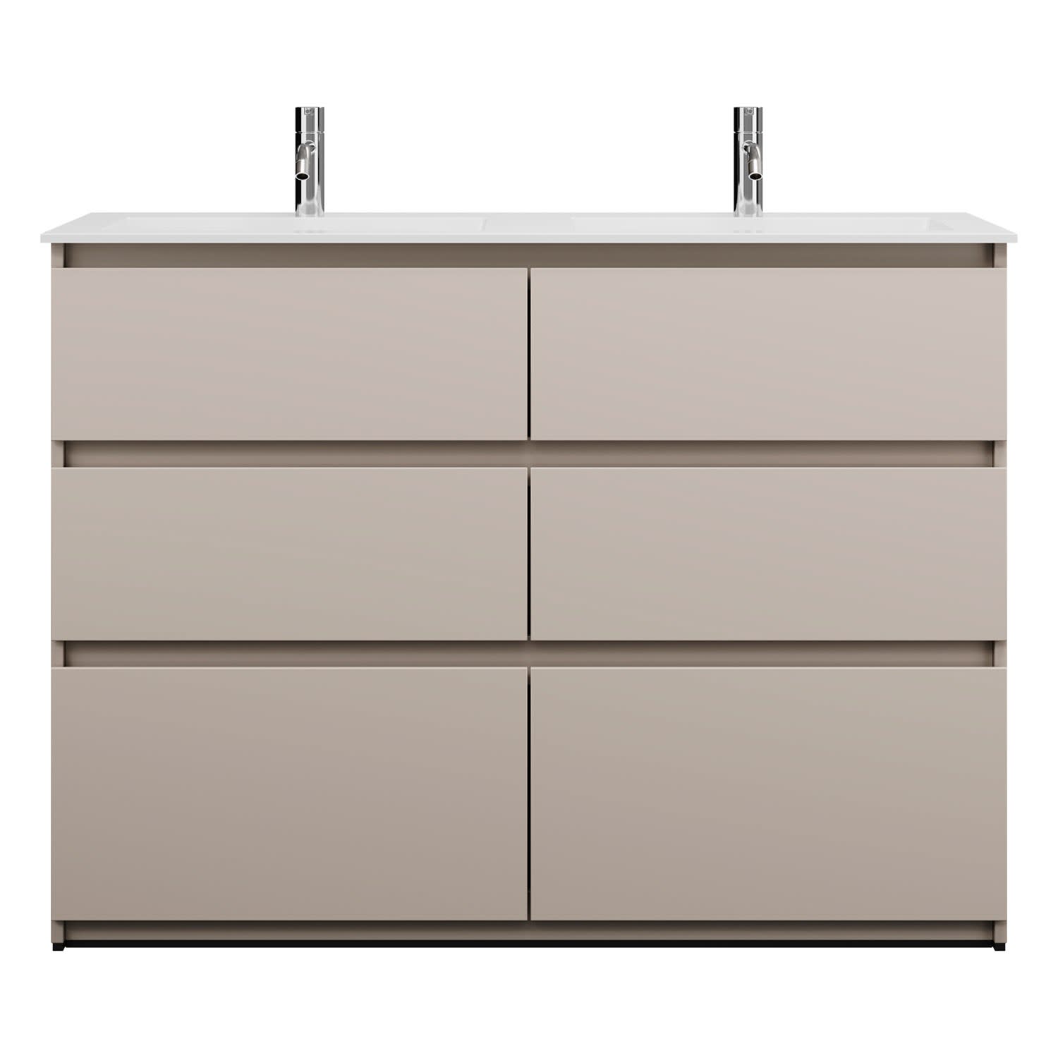 burgbad Lin20 Waschtischunterschrank mit Mineralguss-Doppelwaschtisch 122 cm, 6 Auszüge, links und rechts