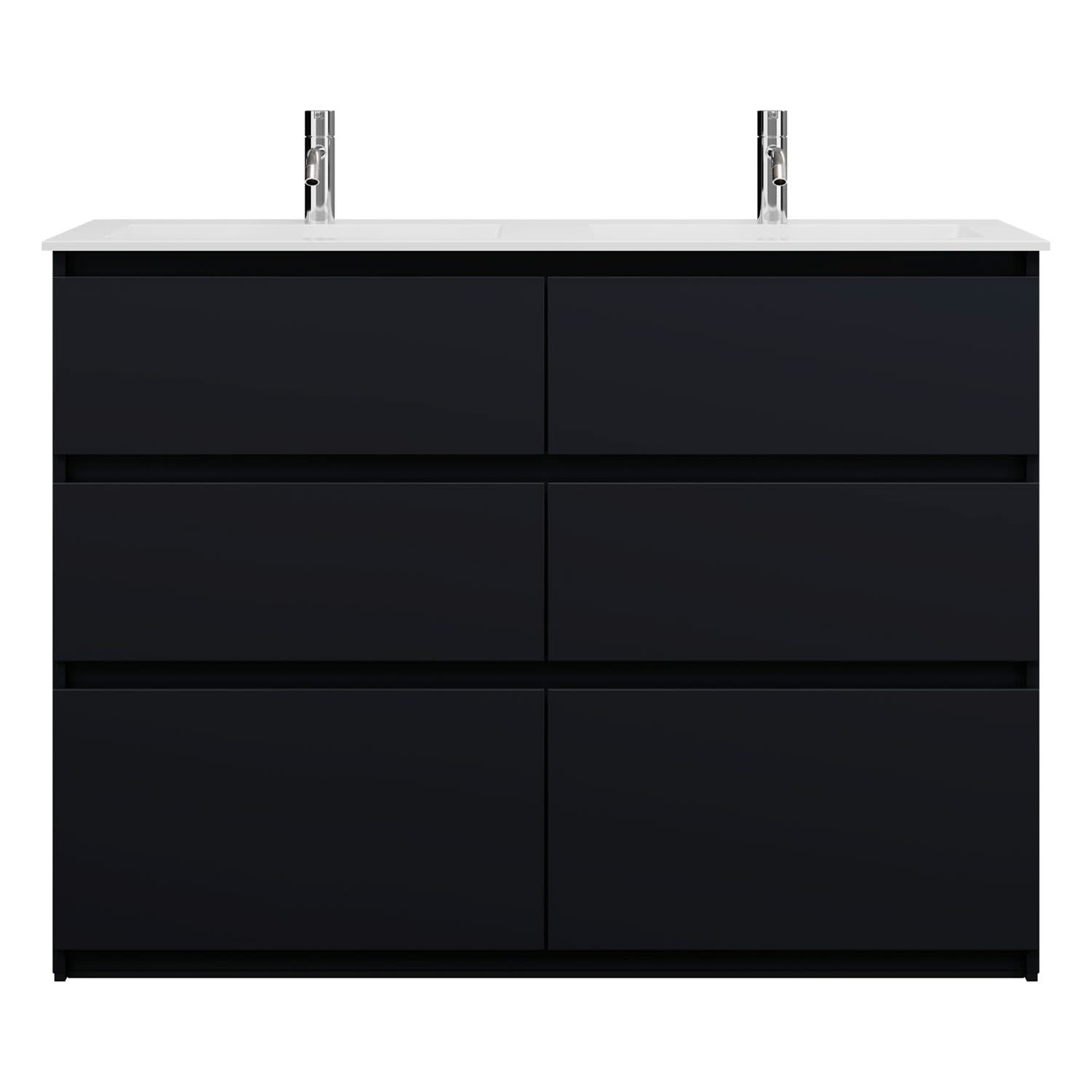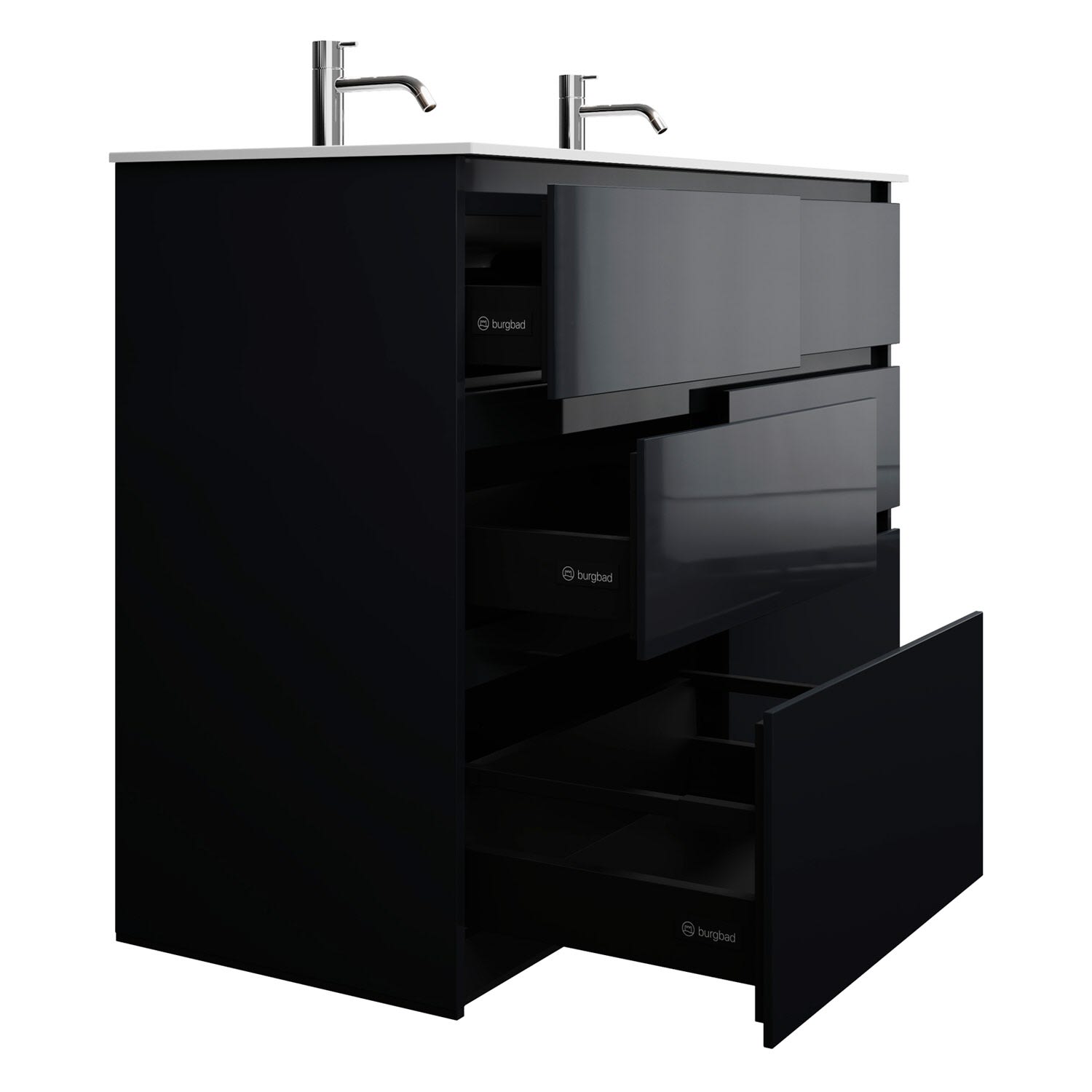 burgbad Lin20 Waschtischunterschrank mit Mineralguss-Doppelwaschtisch 122 cm, 6 Auszüge, links und rechts