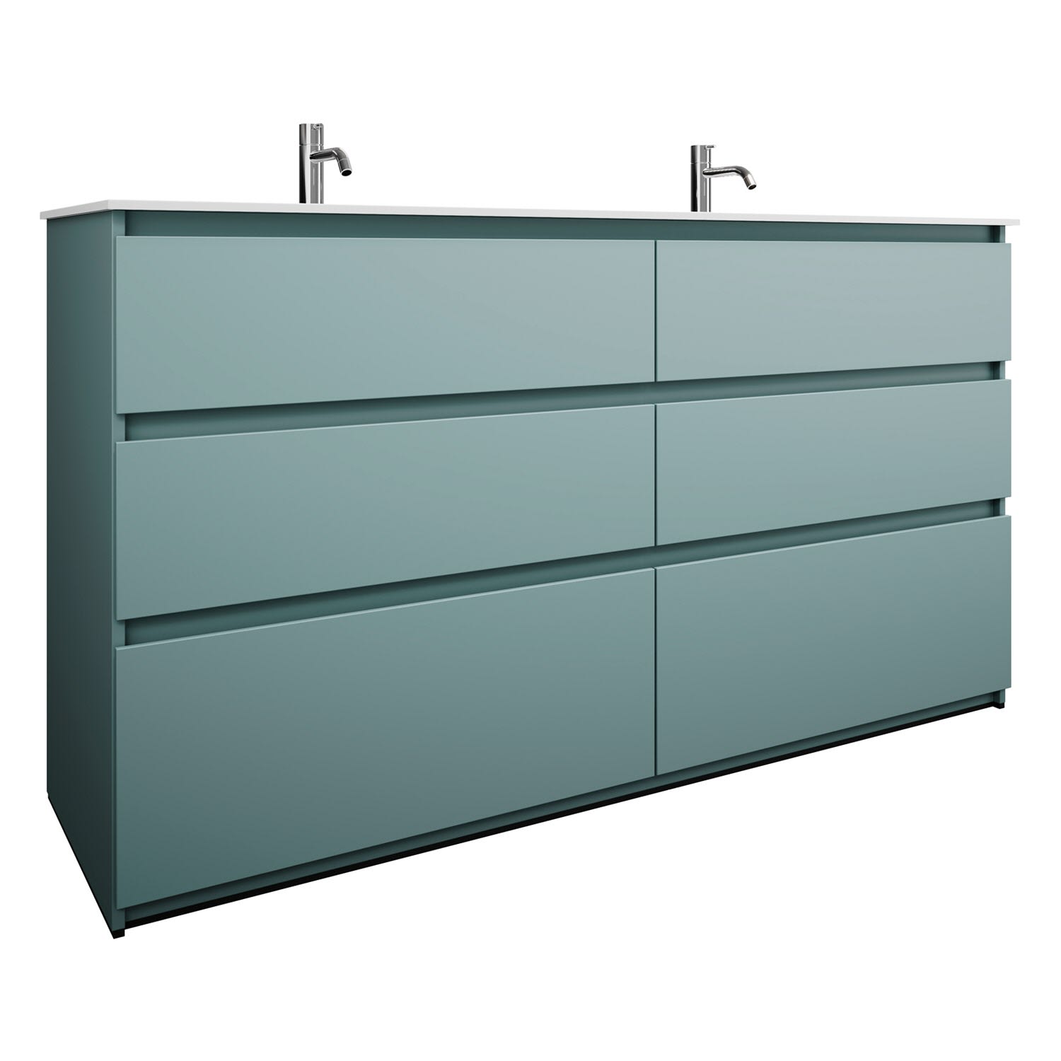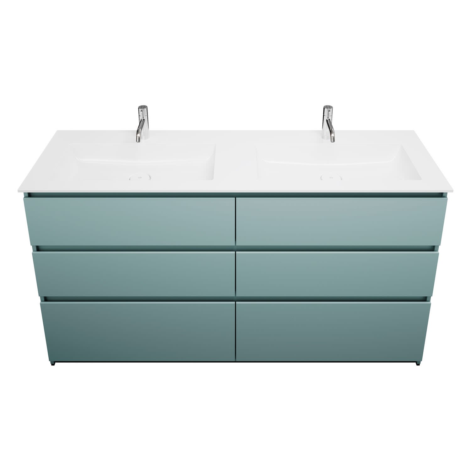 burgbad Lin20 Waschtischunterschrank mit Mineralguss-Doppelwaschtisch 162 cm, 6 Auszüge, links und rechts