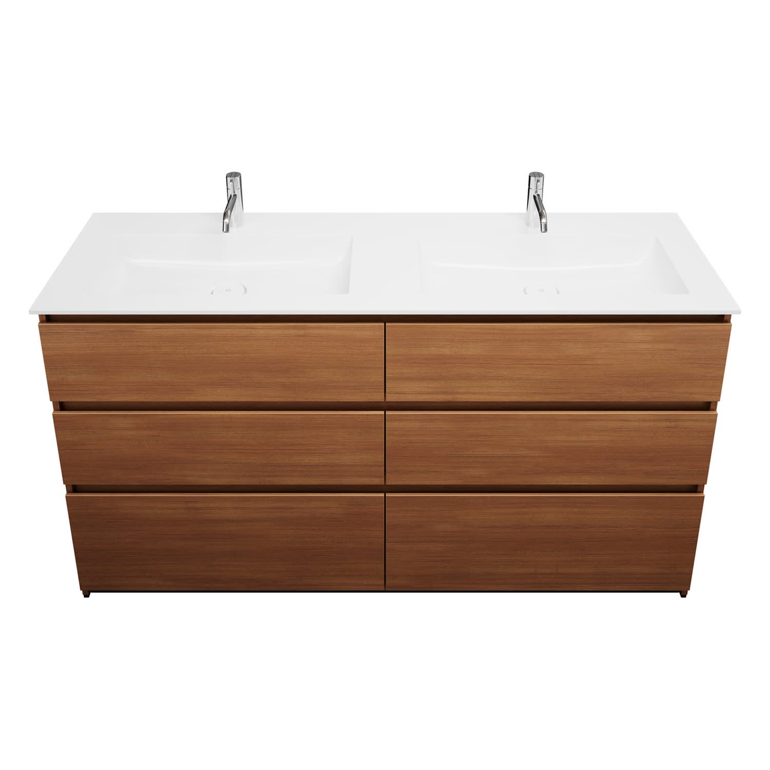burgbad Lin20 Waschtischunterschrank mit Mineralguss-Doppelwaschtisch 162 cm, 6 Auszüge, links und rechts