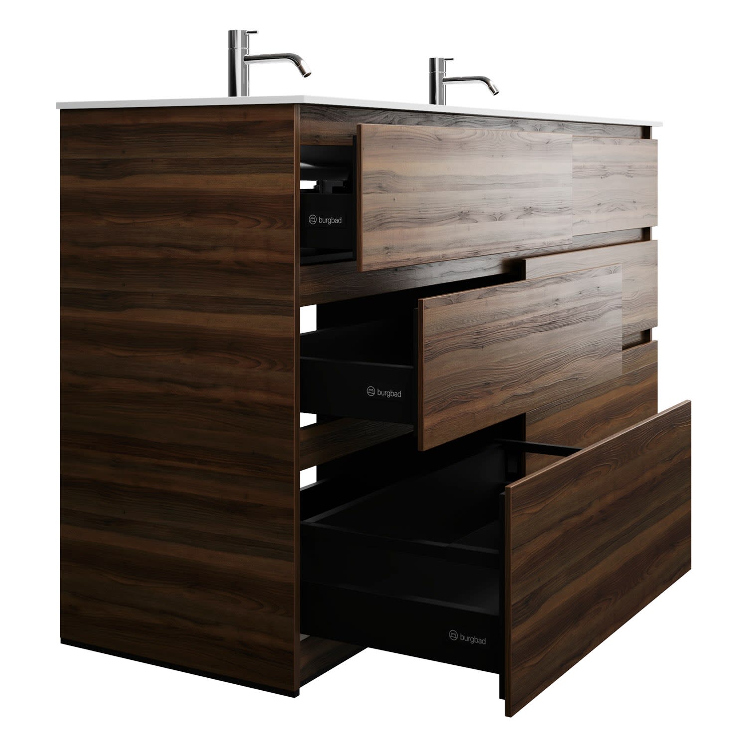 burgbad Lin20 Waschtischunterschrank mit Mineralguss-Doppelwaschtisch 162 cm, 6 Auszüge, links und rechts