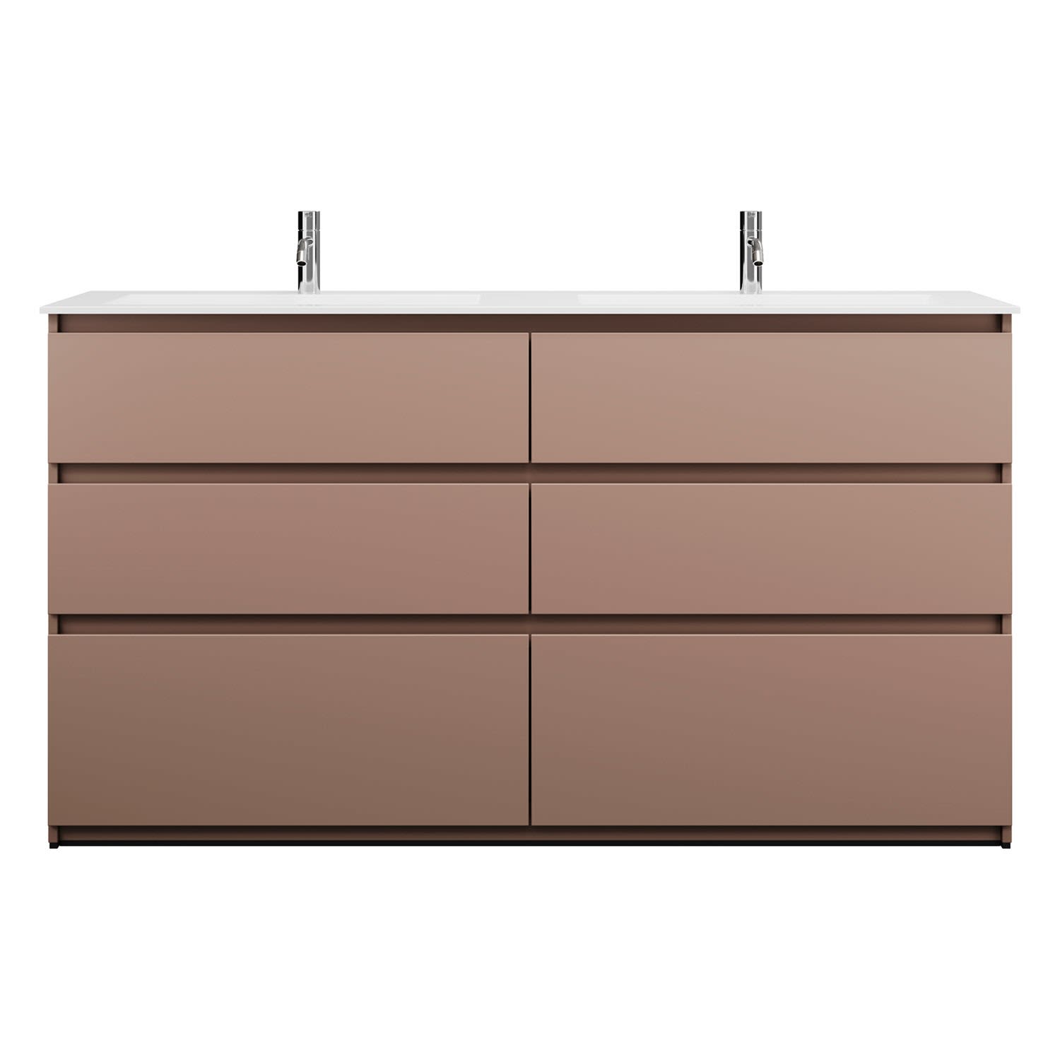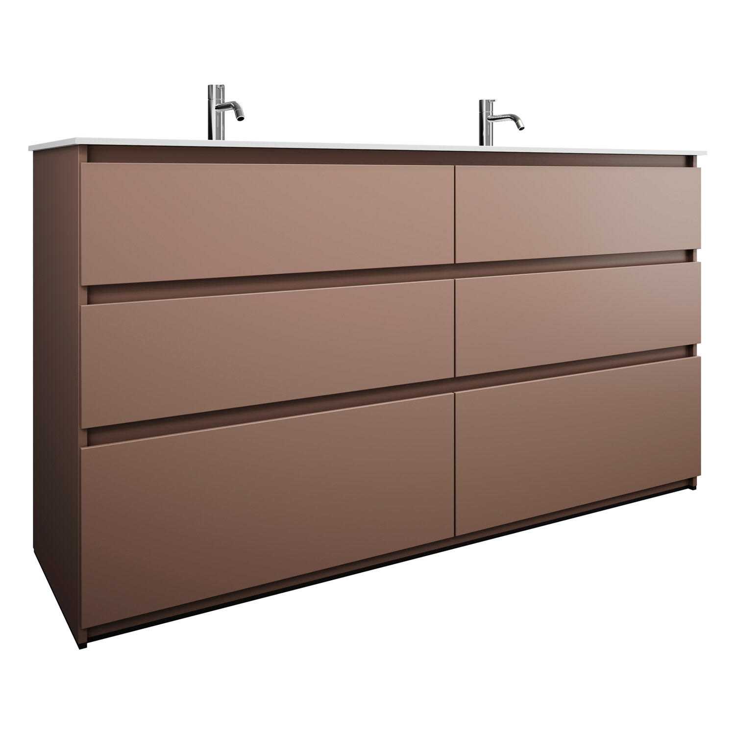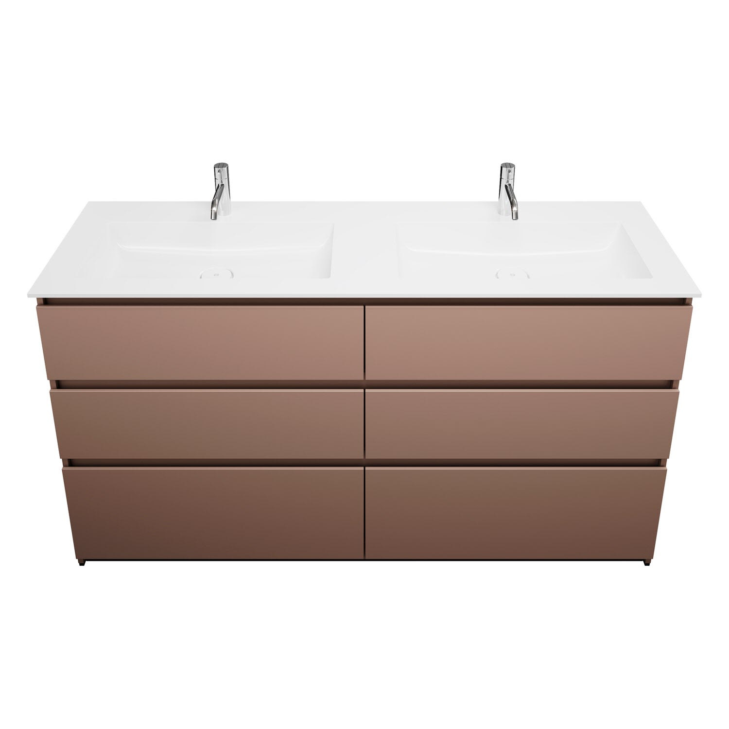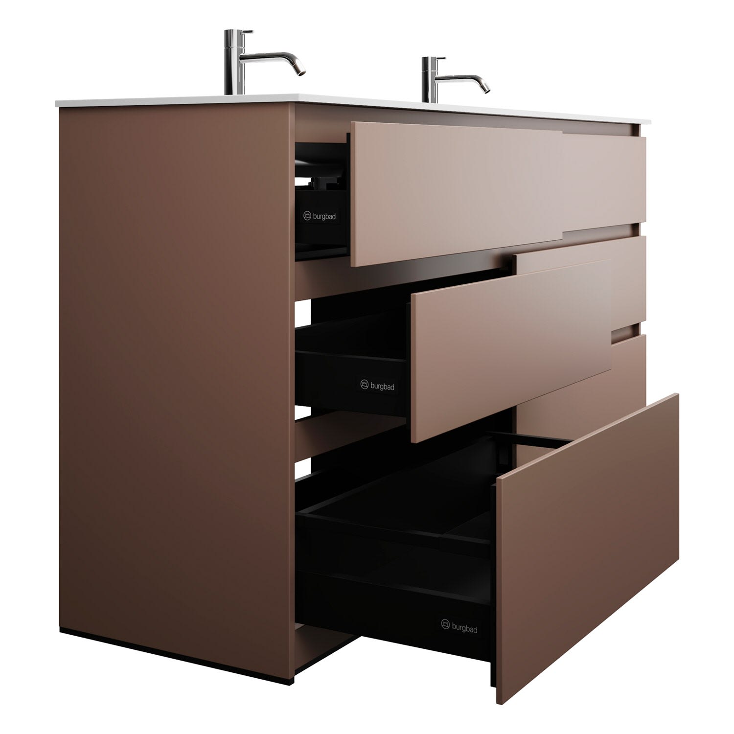 burgbad Lin20 Waschtischunterschrank mit Mineralguss-Doppelwaschtisch 162 cm, 6 Auszüge, links und rechts