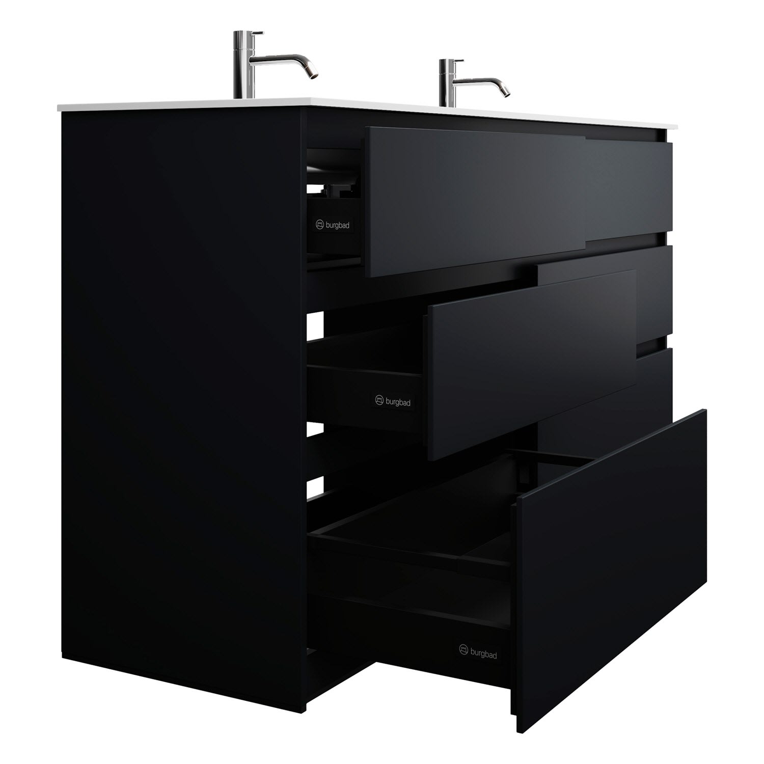 burgbad Lin20 Waschtischunterschrank mit Mineralguss-Doppelwaschtisch 162 cm, 6 Auszüge, links und rechts