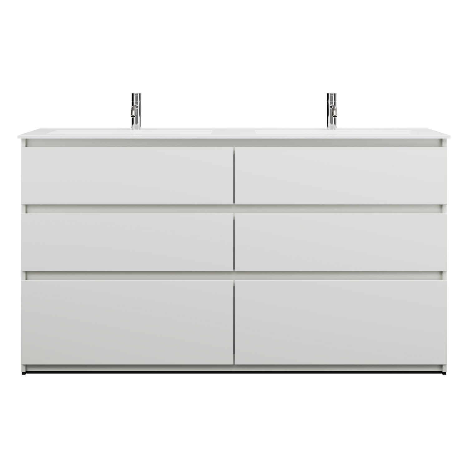burgbad Lin20 Waschtischunterschrank mit Mineralguss-Doppelwaschtisch 162 cm, 6 Auszüge, links und rechts