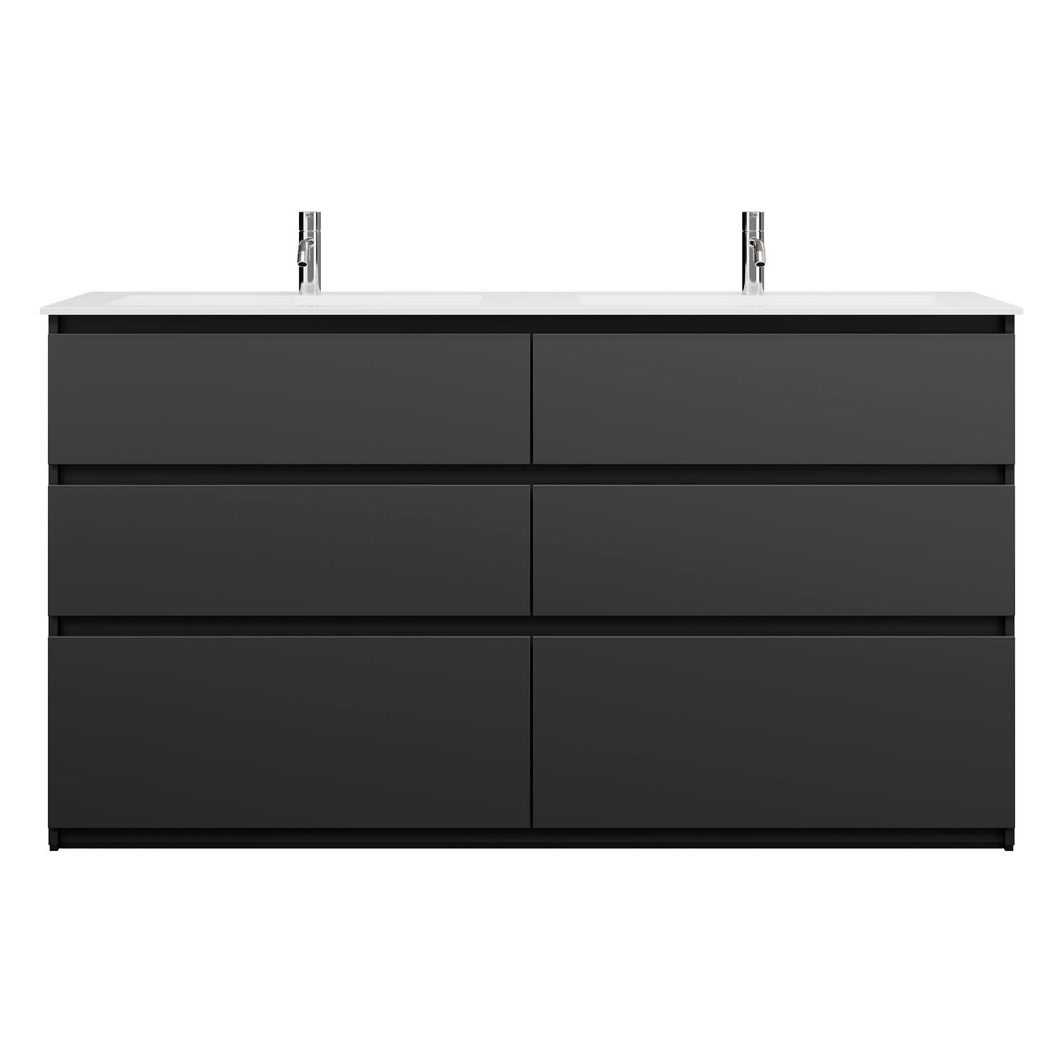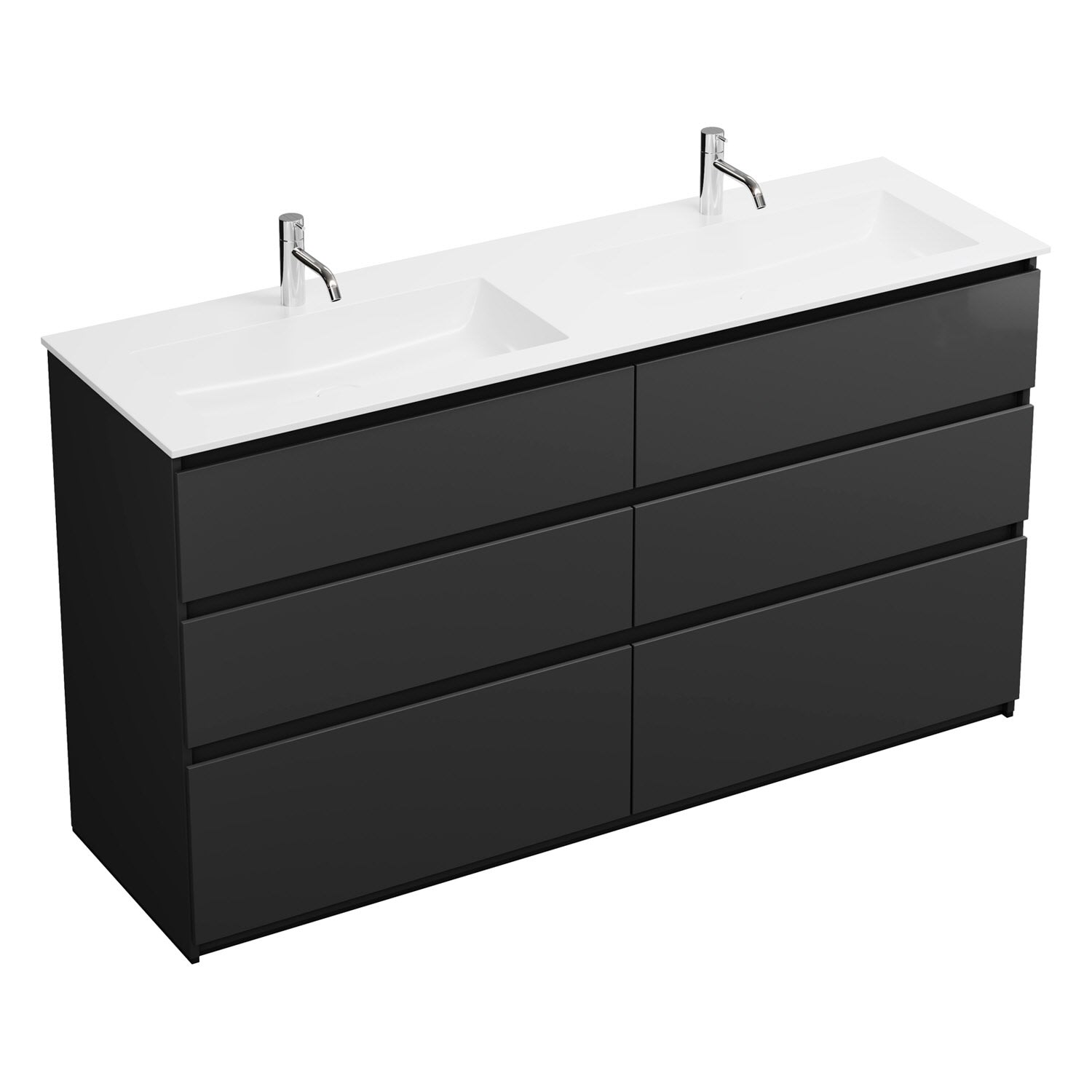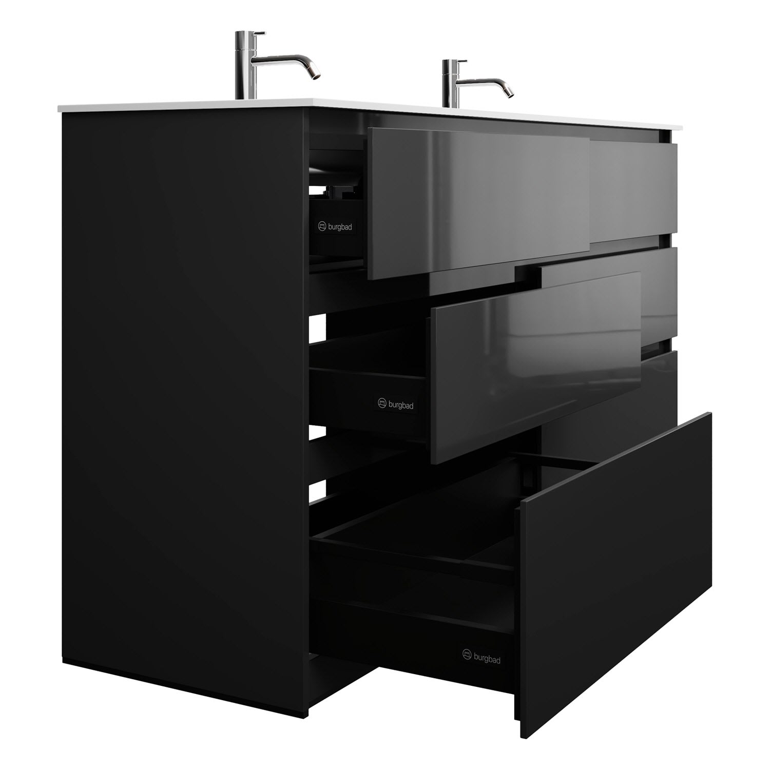 burgbad Lin20 Waschtischunterschrank mit Mineralguss-Doppelwaschtisch 162 cm, 6 Auszüge, links und rechts