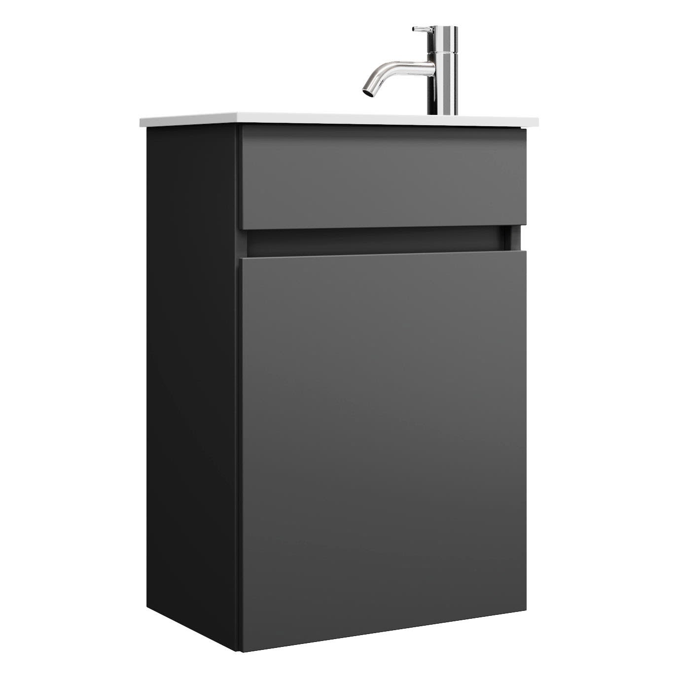 burgbad Lin20 Waschtischunterschrank mit Mineralguss-Waschtisch 42 cm, 1 Tür, links