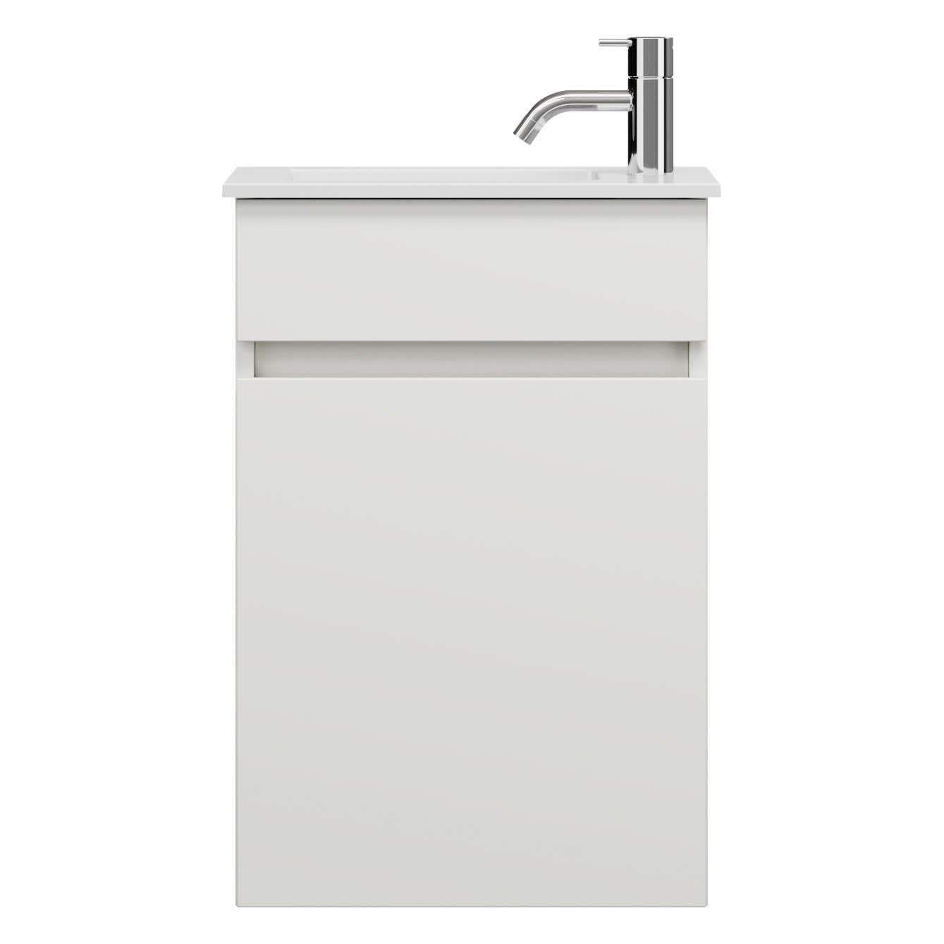 burgbad Lin20 Waschtischunterschrank mit Mineralguss-Waschtisch 42 cm, 1 Tür, links