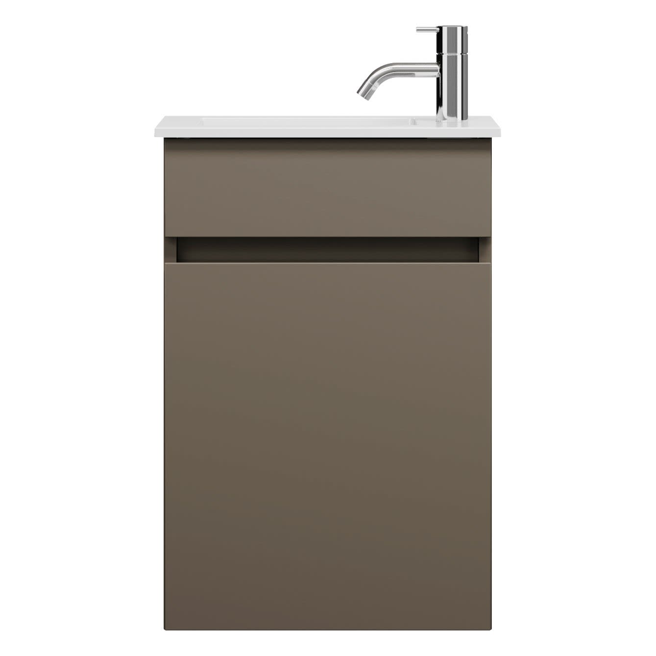 burgbad Lin20 Waschtischunterschrank mit Mineralguss-Waschtisch 42 cm, 1 Tür, links