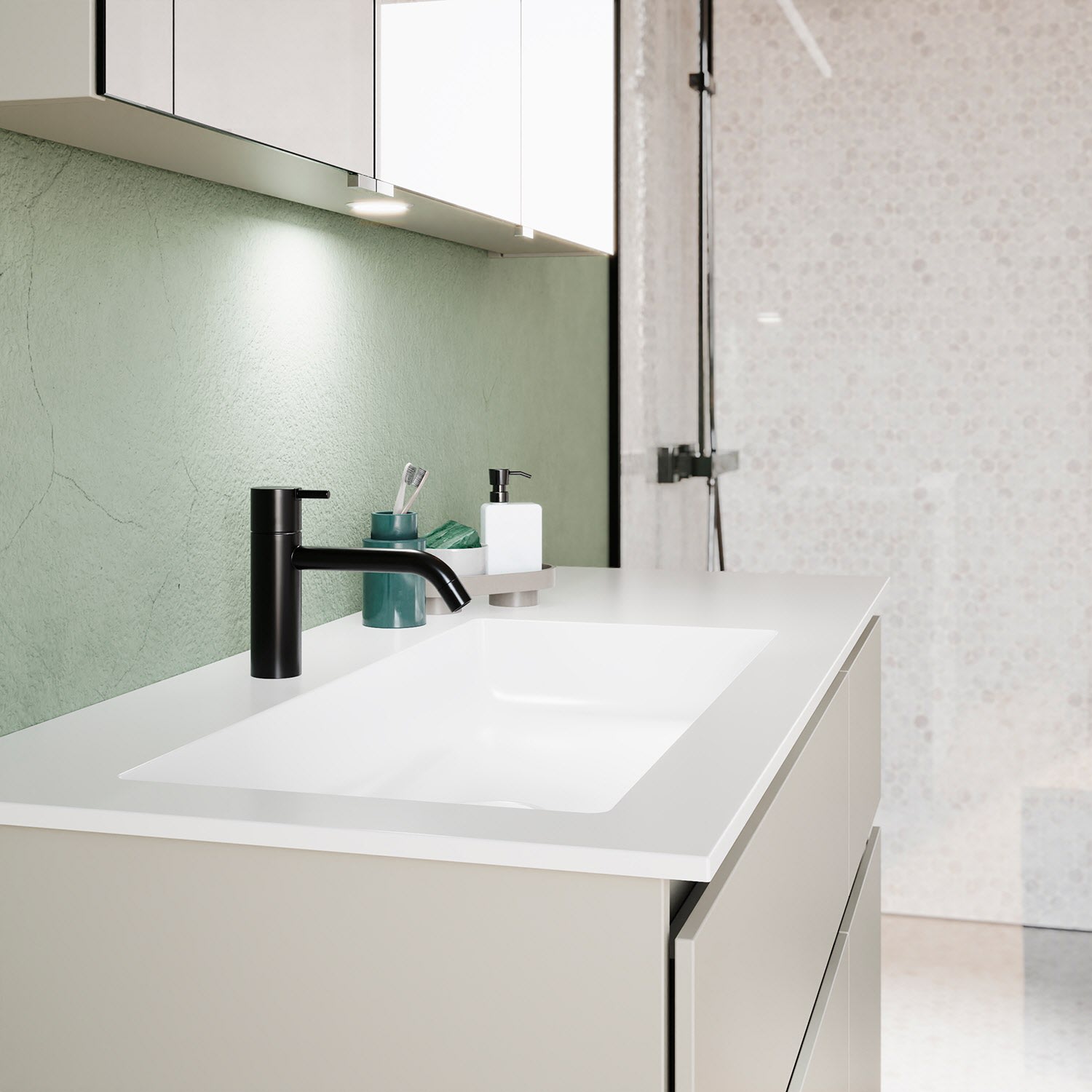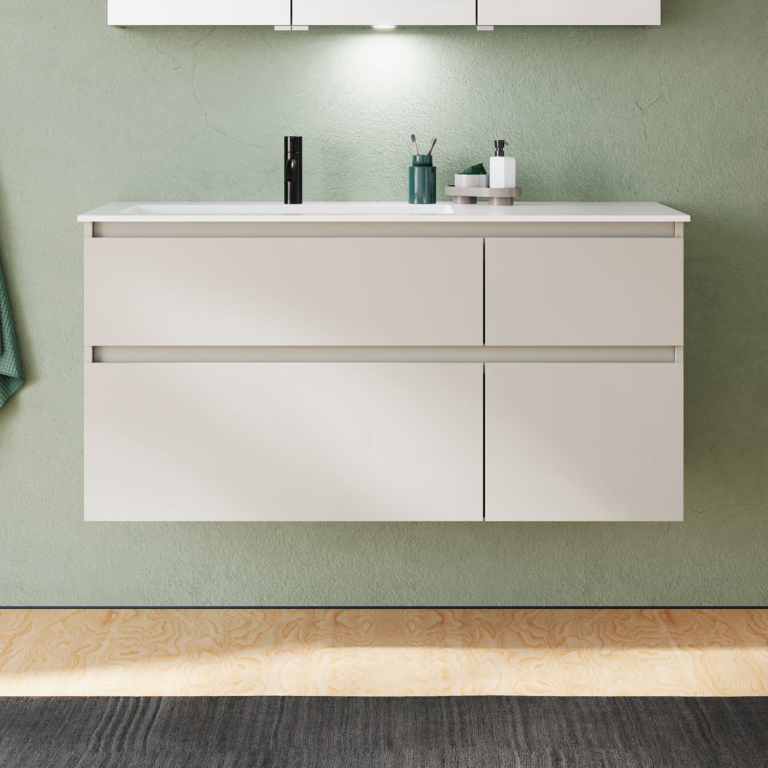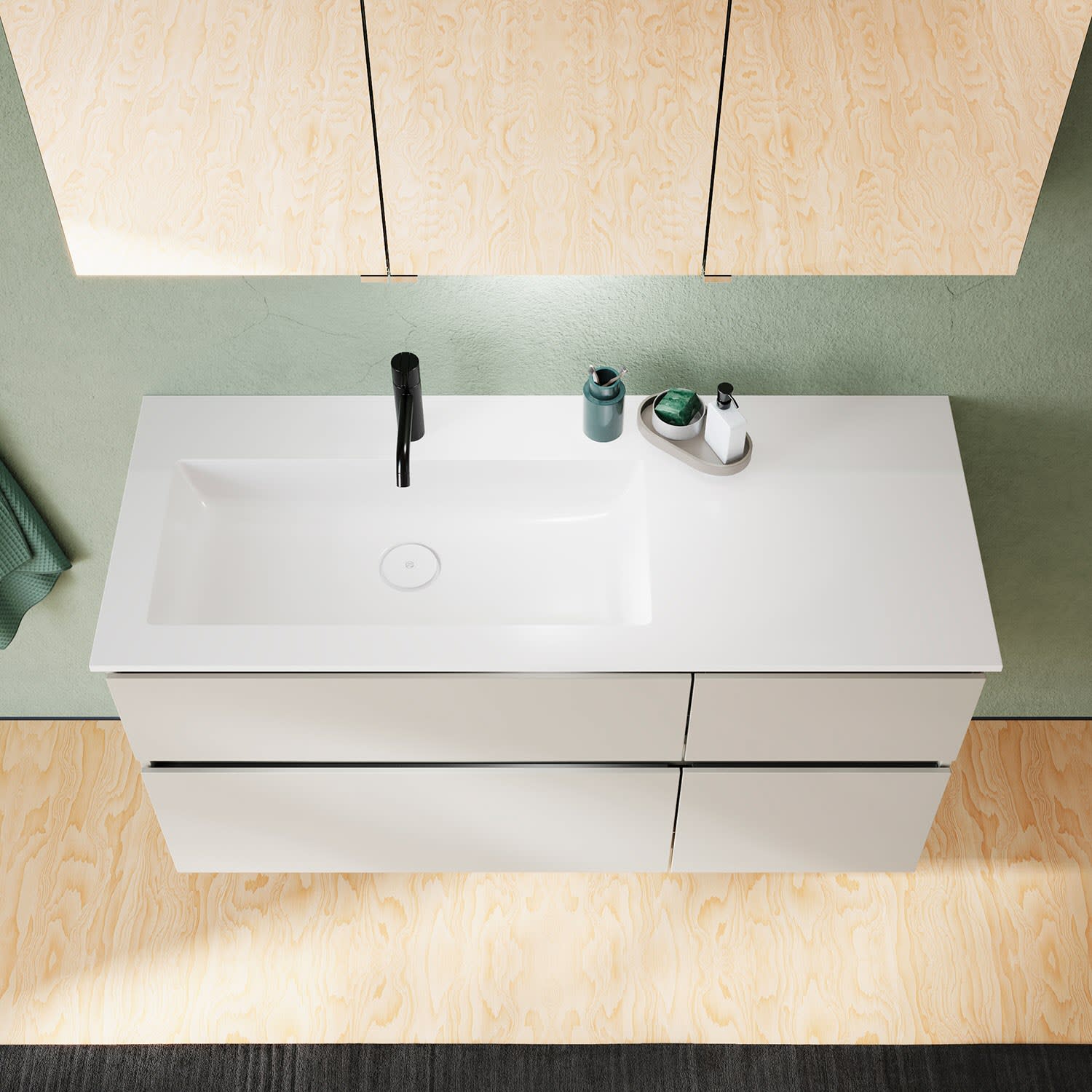 burgbad Lin20 Waschtischunterschrank mit Mineralguss-Waschtisch 122 cm, 4 Auszüge, links
