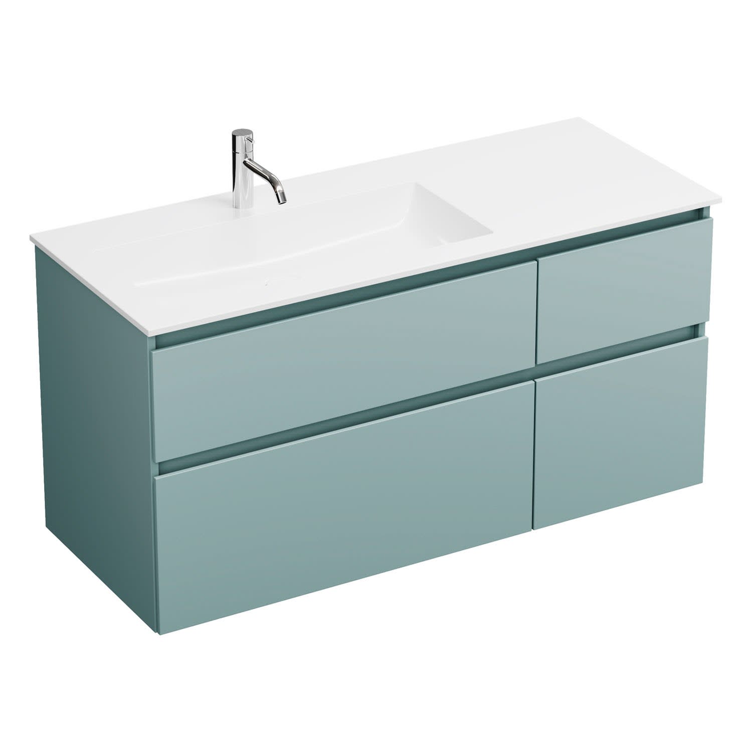 burgbad Lin20 Waschtischunterschrank mit Mineralguss-Waschtisch 122 cm, 4 Auszüge, links
