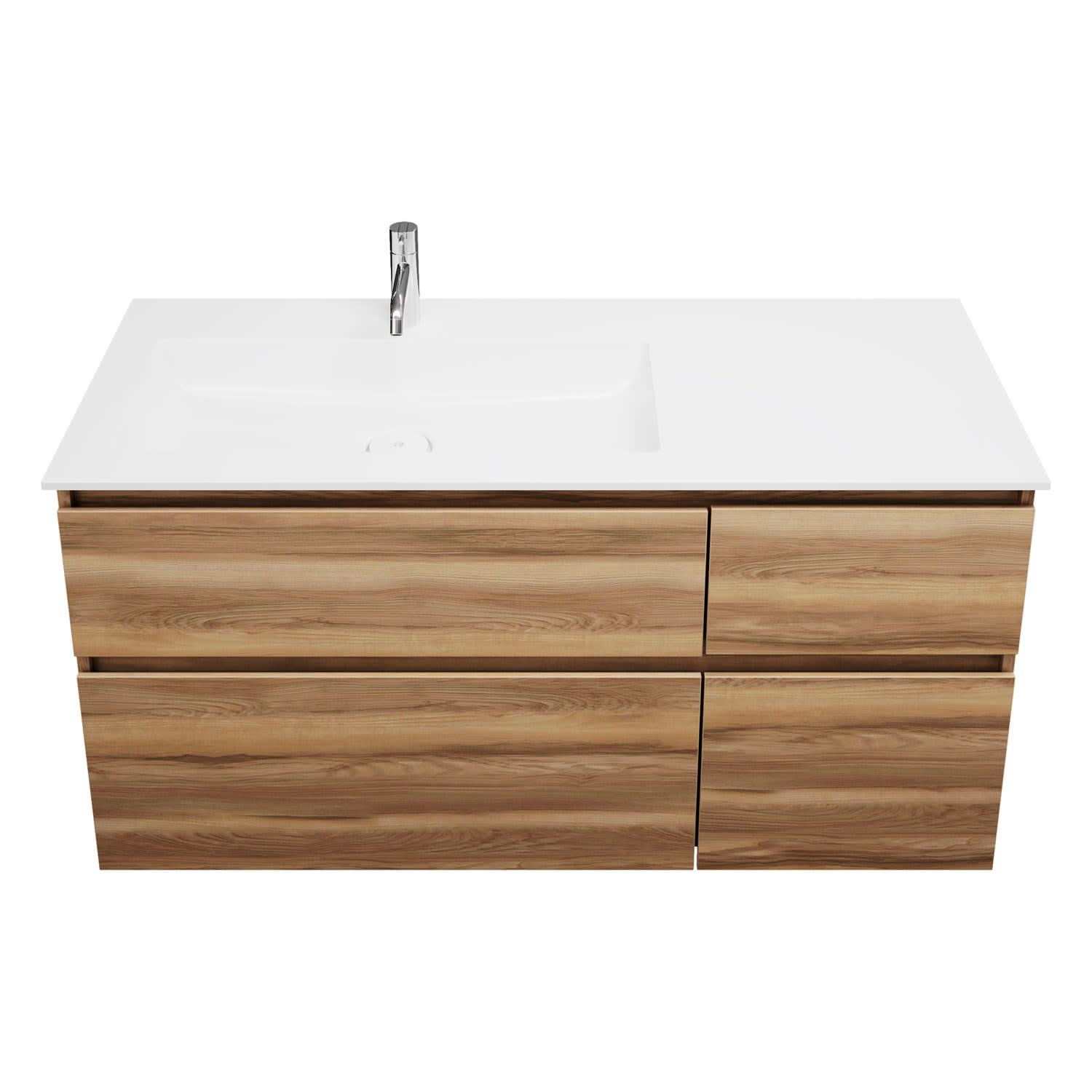 burgbad Lin20 Waschtischunterschrank mit Mineralguss-Waschtisch 122 cm, 4 Auszüge, links