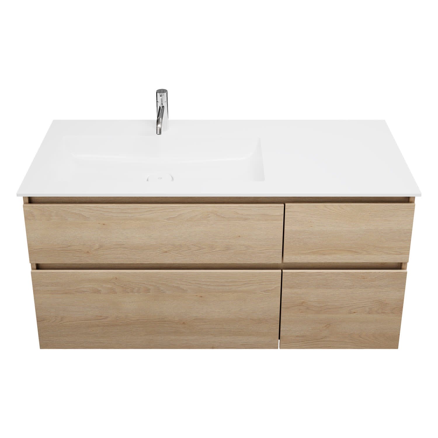 burgbad Lin20 Waschtischunterschrank mit Mineralguss-Waschtisch 122 cm, 4 Auszüge, links