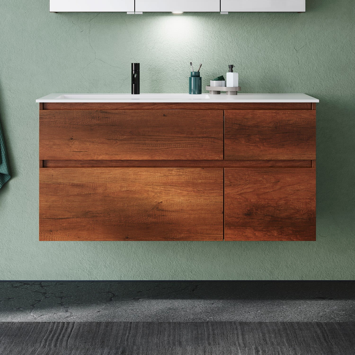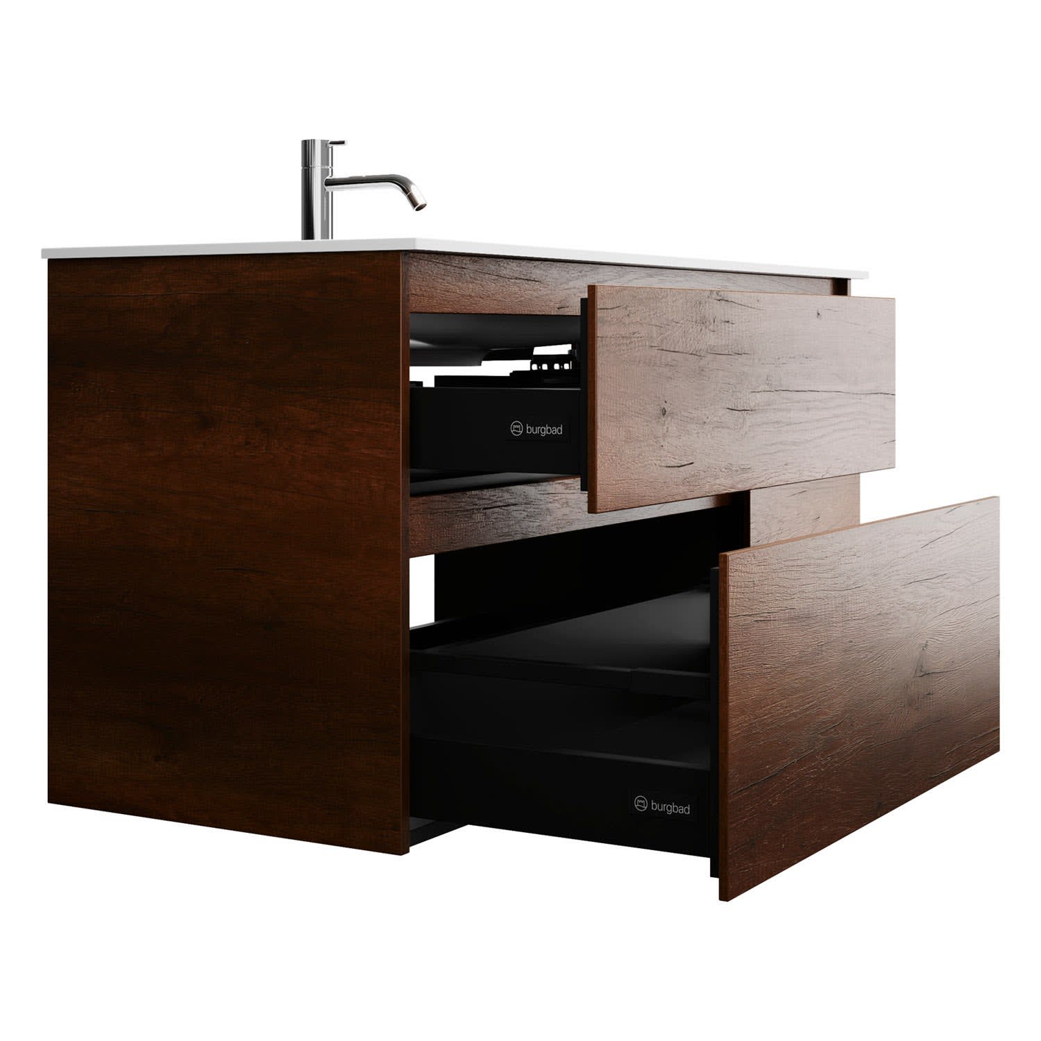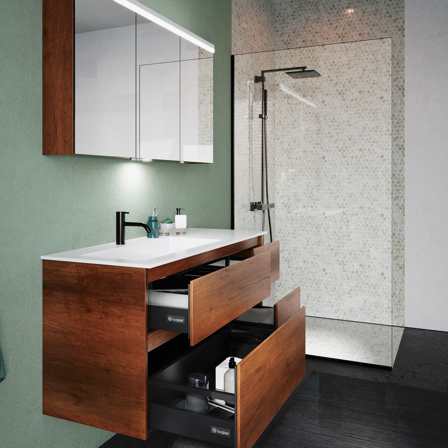 burgbad Lin20 Waschtischunterschrank mit Mineralguss-Waschtisch 122 cm, 4 Auszüge, links