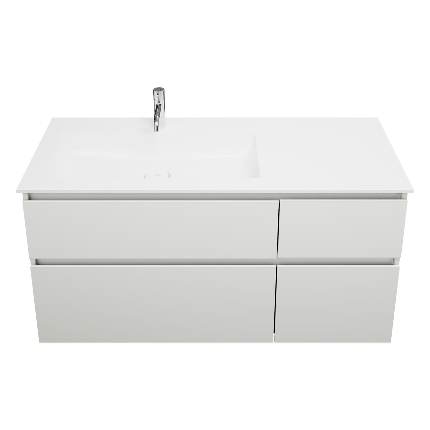 burgbad Lin20 Waschtischunterschrank mit Mineralguss-Waschtisch 122 cm, 4 Auszüge, links