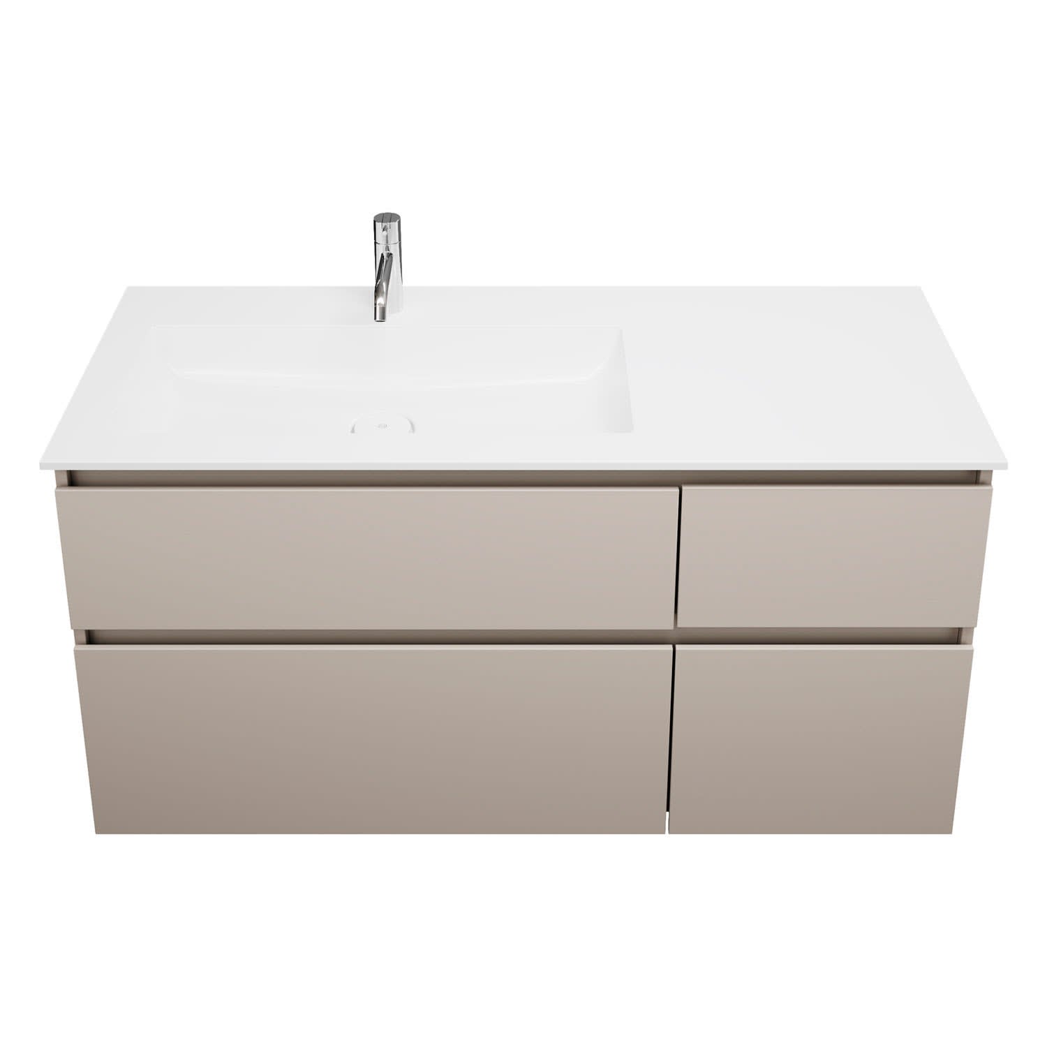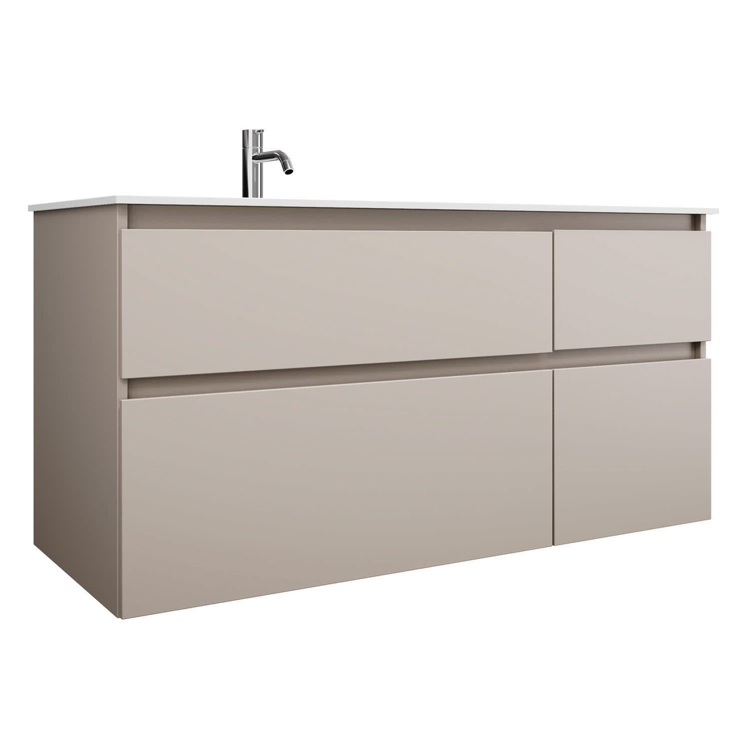 burgbad Lin20 Waschtischunterschrank mit Mineralguss-Waschtisch 122 cm, 4 Auszüge, links