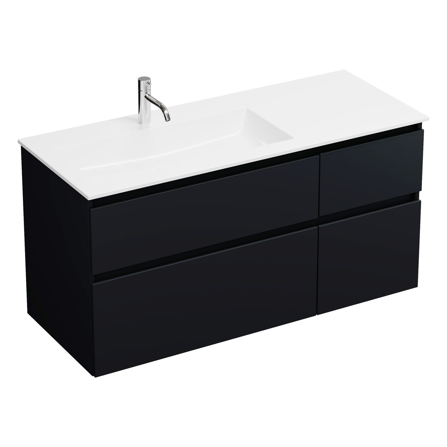 burgbad Lin20 Waschtischunterschrank mit Mineralguss-Waschtisch 122 cm, 4 Auszüge, links